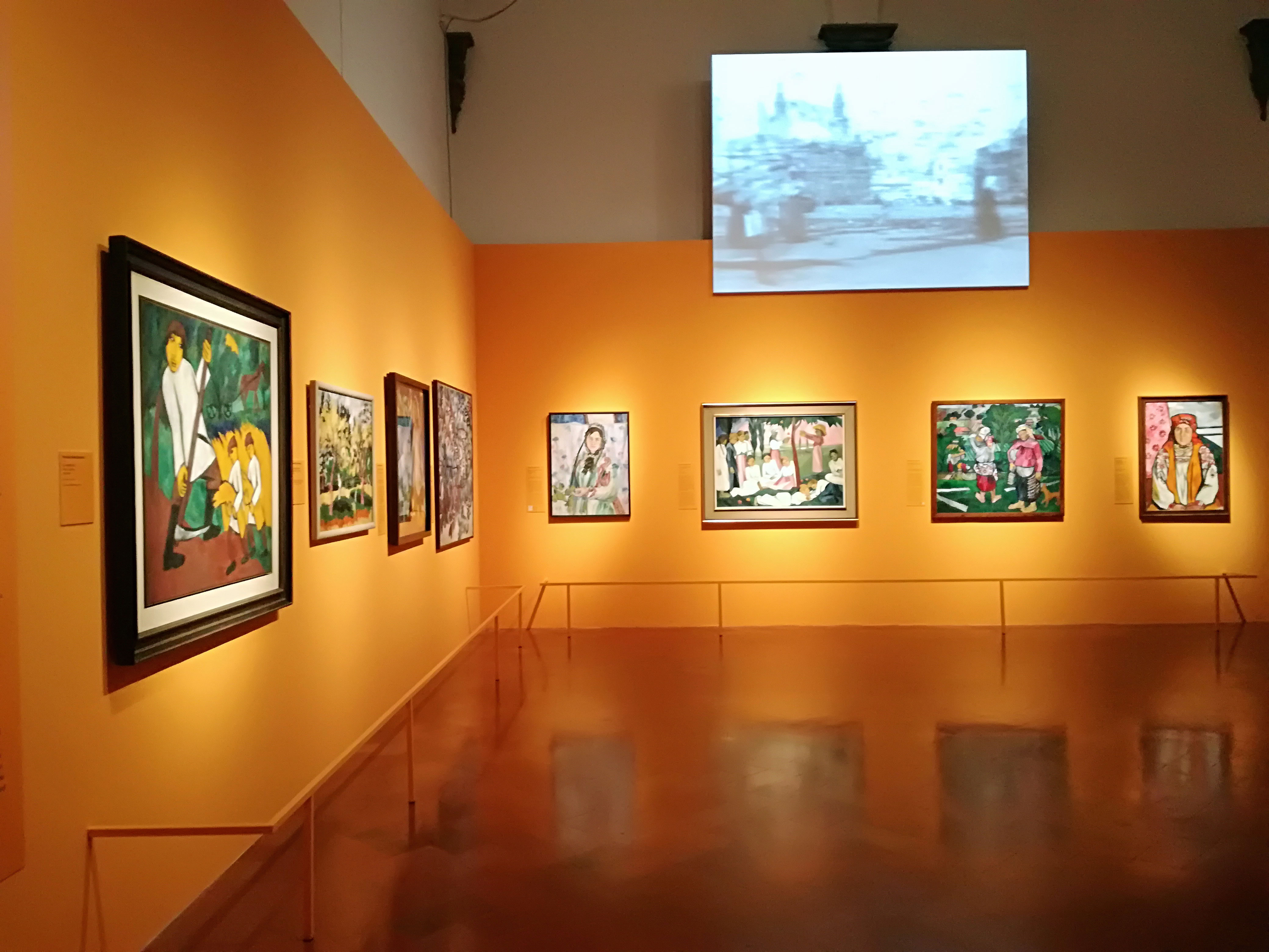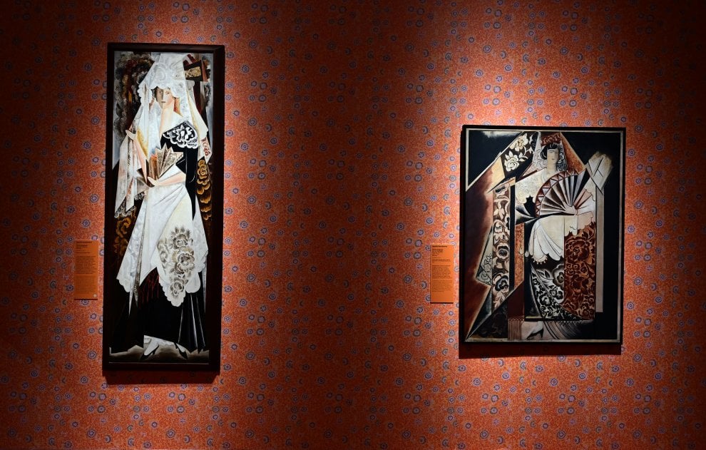 La mostra ospita inoltre opere inedite, alcune mai esposte prima e si chiude con la sezione “Dopo la Russia”, in cui ci addentriamo dalla rappresentazione del folclore russo che emerge dall’Autoritratto con gigli gialli, nella coloratissima influenza che ebbe su di lei la tournée spagnola del 1916, fonte di suggestione per una serie di opere conosciute come Donne spagnole. Queste figure ricordano per la ieraticità e il formato i precedenti dipinti sacri ispirati alle icone, ma mostrano, nei costumi, un decorativismo accentuato, caratterizzato da mantiglie, merletti, pettini e ventagli.