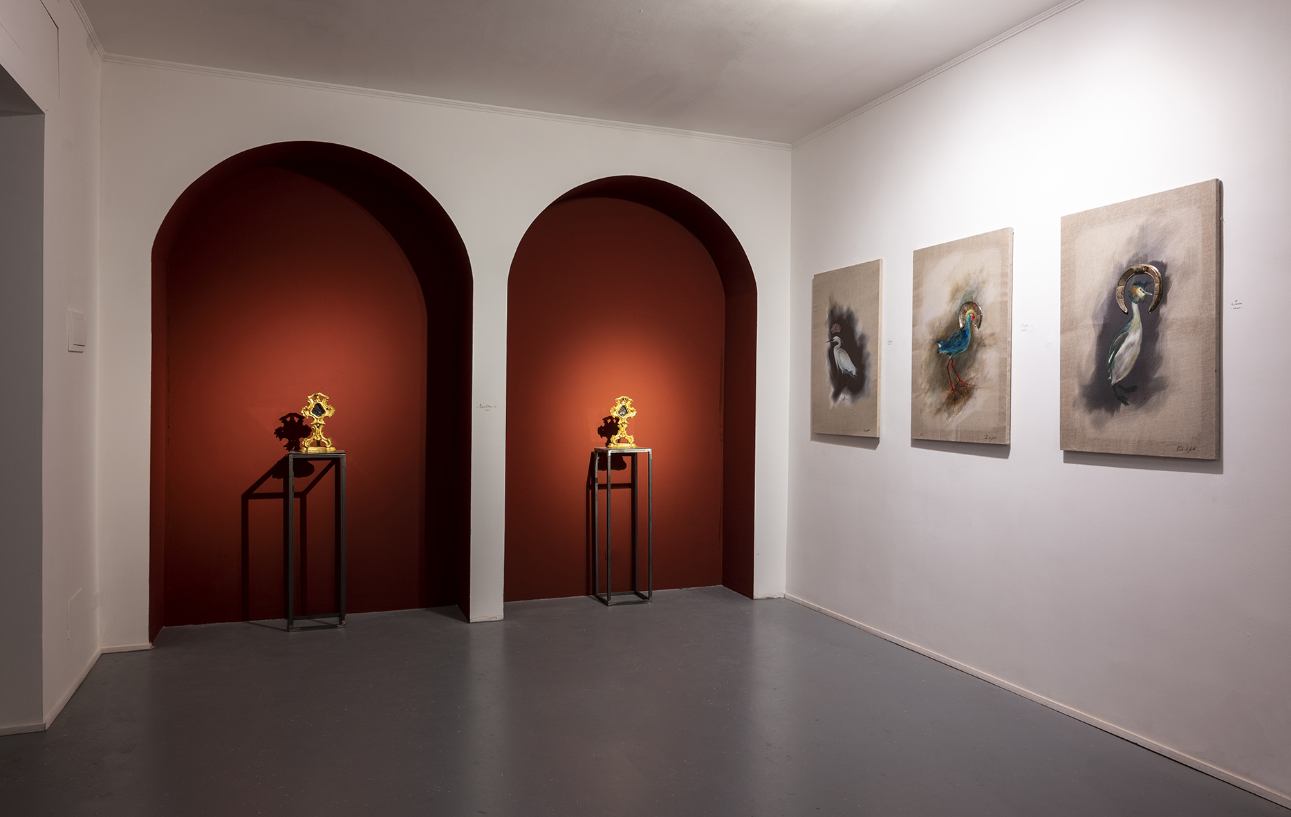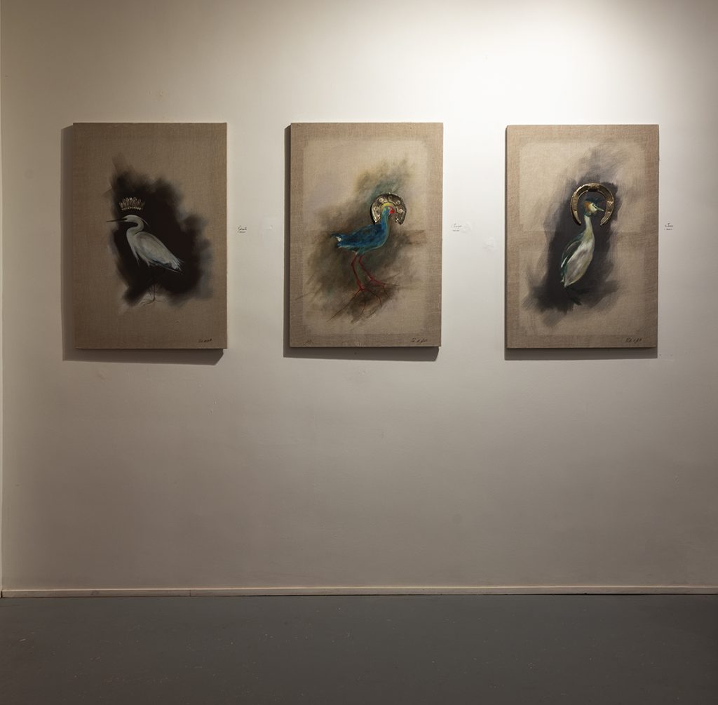 Emerge quindi dal percorso espositivo il proposito di rappresentare il mondo naturale come una manifestazione del divino, assurgendo a simboli votivi religiosi le specie animali, in particolare ornitologiche, che l’artista ha avuto modo di riscoprire durante la sua attività di ricerca in Messico: in Garzetta, Svasso e Porphiryo variopinti volatili vengono ritratti come icone russe grazie all’intervento posticcio dell’artista. Si ravvisa nell’allestimento sapientemente orchestrato insieme alla curatrice Chiara Cianni una visione culturalmente sincretica, che non si esaurisce nell’attribuzione pancosmica di ogni elemento alla divinità, bensì, in una prospettiva più olistica, si esaltano diverse declinazioni estetiche e spirituali della natura, chiarendo come questa sia un’espressione del divino in tutta la sua interezza al pari della creazione dell’uomo. A tal proposito è lo stesso artista a rendere nota questa dichiarazione di intenti: «Ho scovato nel divino un’importanza sacra quasi indistruttibile che può aiutarmi a restituire l’importanza delle altre creature che ci circondano. L’uomo come animale ingegnoso non deve distruggere per farsi spazio ma proteggere».