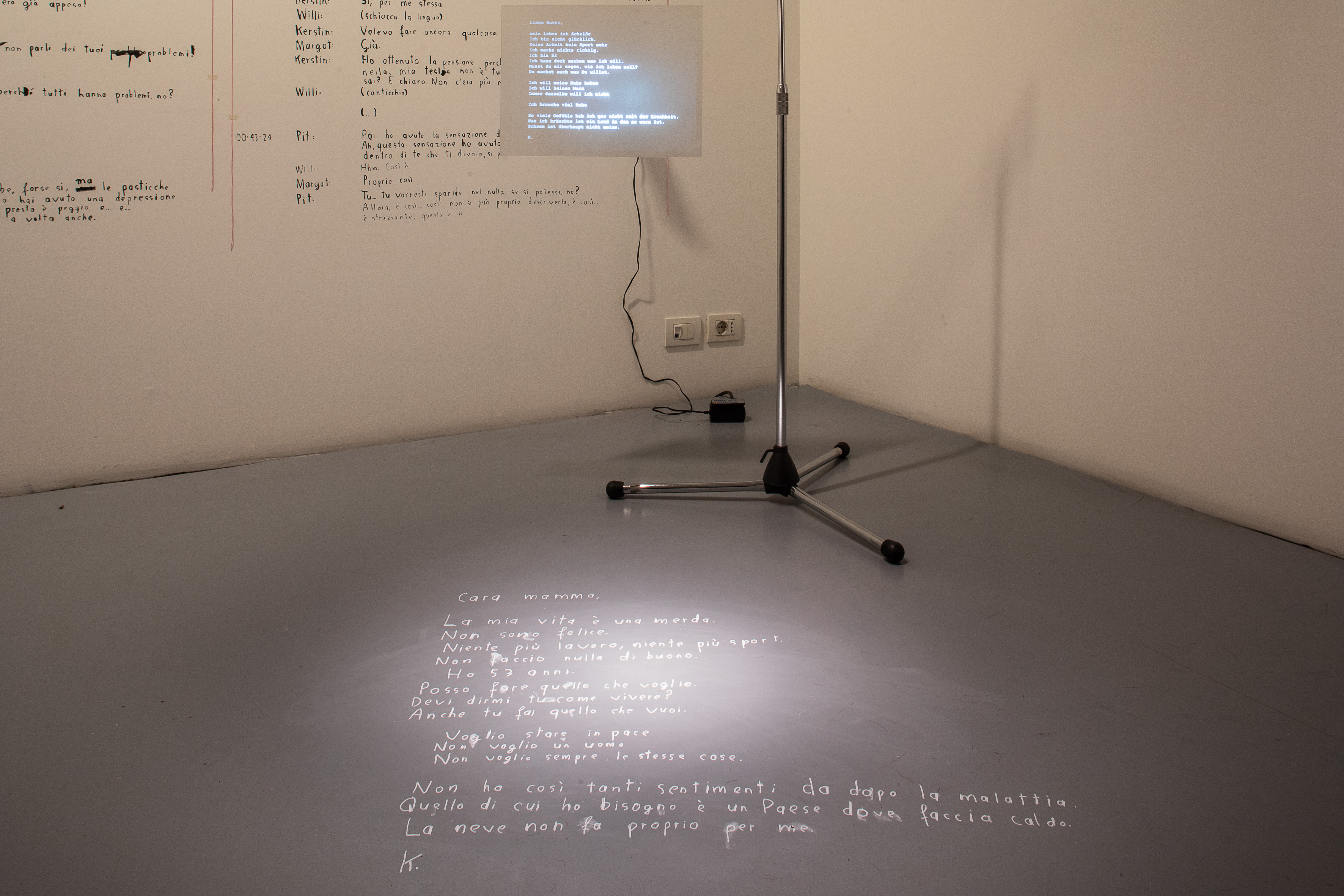 «In mostra saranno proiettati i film Le mosche (Birds II) (2011), Il grande marciume (2013), Sette volte al giorno ci lamentiamo della nostra sorte e di notte ci alziamo per non sognare (2014) e Come è quieto il mondo (2012). I film sono corredati da testi scritti a mano a parete e pavimento dall’artista, canzoni, dati statistici tutti legati a storie vissute nella regione della Turingia. Con un andamento onirico, Hempel si muove tra i piani degli oggetti, della parola e dell’immagine, ma anche del suono, della musica e del testo», ha spiegato l’istituzione.