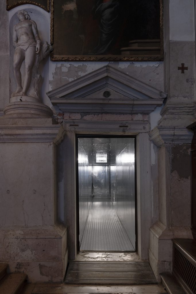 Con le otto video installazioni site-specific che Fondazione In Between Art Film ha commissionato a Basel Abbas e Ruanne Abou-Rahme, Giorgio Andreotta Calò, Saodat Ismailova, Cinthia Marcelle e Tiago Mata Machado, Diego Marcon, Basir Mahmood, Ari Benjamin Meyers e Christian Nyampeta, lo studio interdisciplinare 2050+ ha trasformato l’intera geografia dello spazio del Complesso dell’Ospedaletto di Venezia immaginando una scenografia espositiva che materializza alcune proprietà della nebulosità liberando – nel passaggio da un’opera all’altra – i sensi, che possono acuirsi o ottundersi.