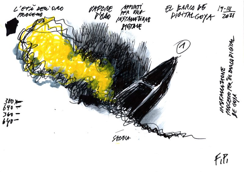 Nero Oro si propone dunque come un’opportunità per immergersi in un dialogo coinvolgente tra passato e presente, guidato dalla visione artistica di Fabrizio Plessi. La rielaborazione costante di progetti e temi già precedentemente affrontati nelle sue opere, manifestata attraverso i suoi disegni e le sue installazioni, evidenzia un’evoluzione continua e una ricerca di significato nell’arte contemporanea. «Io cammino con un piede nella modernità e un altro nell’antichità -conclude Fabrizio Plessi-, è un modo scorretto di camminare però mi permette di procedere su due tempi, ciò è molto importante», in quanto egli cerca di mantenere vivo questo tentativo di trasformare il passato in una nuova forma di espressione, preservando viva l’eredità artistica e culturale mentre si guarda al futuro.