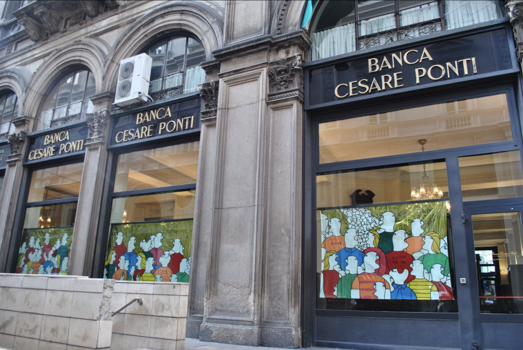 ’“Non tutto ciò che luccica è oro”. Si apre con un paradosso la mostra di Fabrizio Dusi (Sondrio, 1974), ospitata fino al 15 ottobre 2023 alla storica sede milanese di Banca Cesare Ponti a Milano, filiale privata di BPER Banca. Un percorso realizzato in collaborazione con il team arte di Pavesio e Associati with Negri-Clementi, che si sviluppa lungo il piano terra dell’edificio, negli spazi interni e sulle vetrine che affacciano su Piazza Duomo, visibile anche dall’esterno. Dopo Modena e Genova La Galleria, realtà artistica di BPER, approda anche nel capoluogo lombardo, in una sede già specializzata in private banking e consulenza artistica.