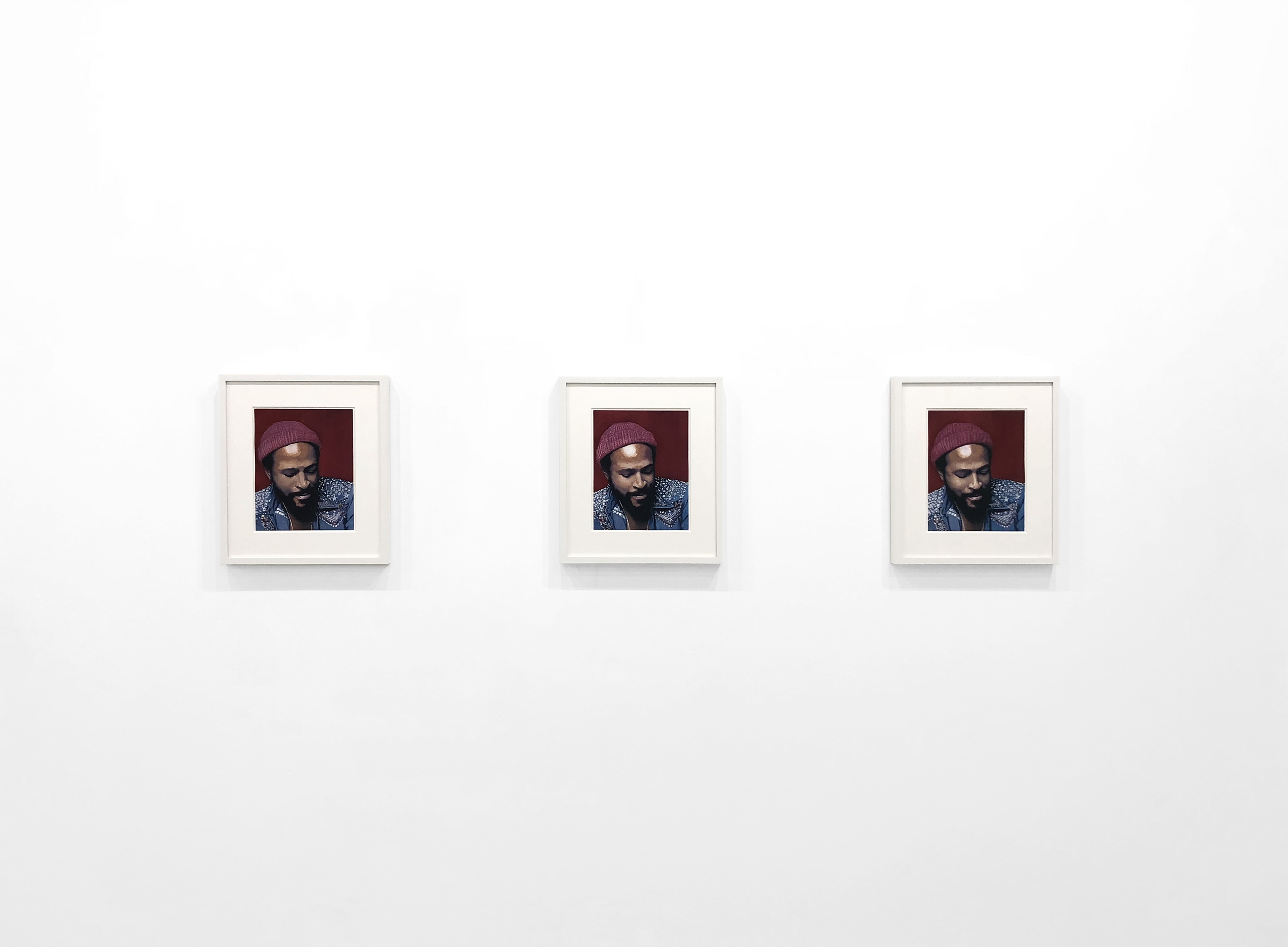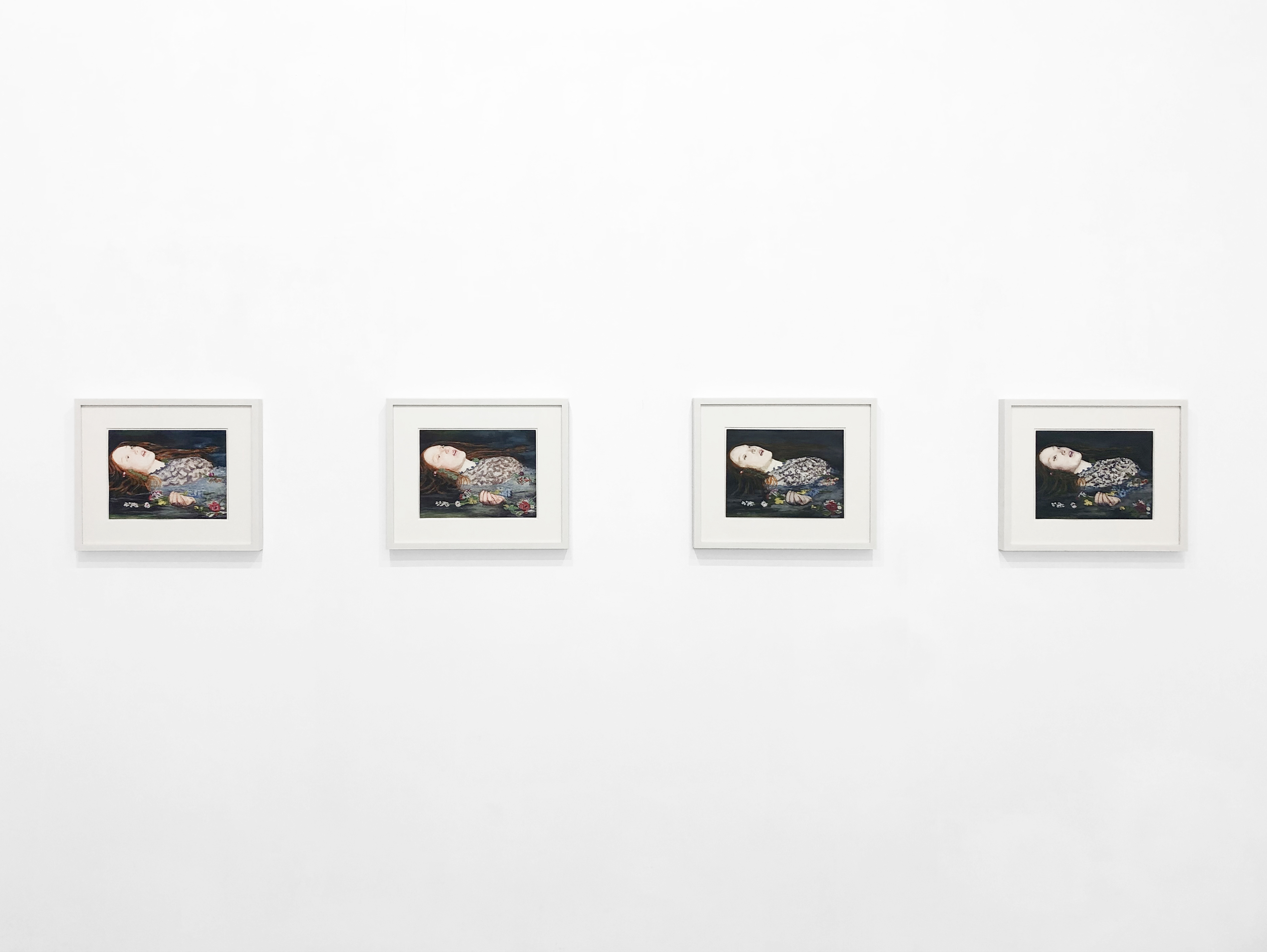 Il concetto di circolarità, espresso sia nel lavoro che nel titolo della mostra, si manifesta più direttamente nelle opere multiple: tre dello stesso ritratto di Marvin Gaye, quattro versioni di Ophelia secondo John Everett Millais, due dipinti dell’iconico “scheletro” dei Grateful Dead. Lo stile di appropriazione di Davis potrebbe essere inteso come una sorta di esercizio psicologico. L’atto di ripetizione, ritorno e rivisitazione, che caratterizza il suo lavoro, implica l’”elaborazione” di un momento della contemporaneità molto gravato dalla sua lunga storia».