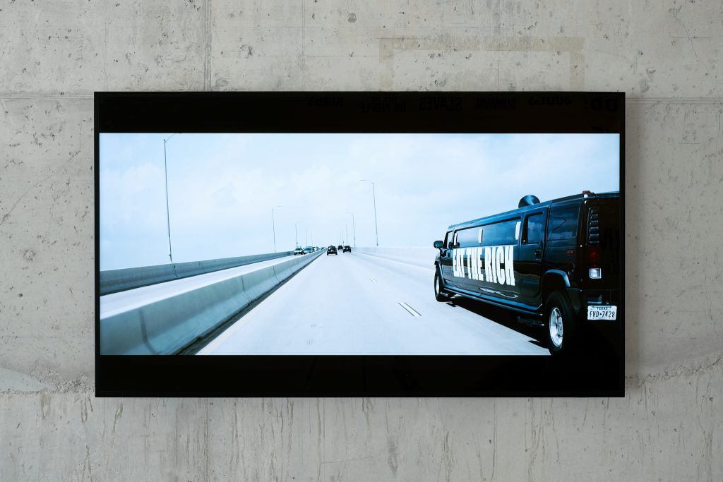 Tratte dal primo atto di Order, Eat the Rich/Kill the Poor, ed esposte come manifesti e anche in una fotografia, queste prese di posizione testimoniano la drammatica iniquità del sistema sociale, politico e capitalistico, muovendosi tra manifestazioni a cielo aperto, centri commerciali fuori città e cene sontuose, per presentare gli antagonismi storici degli oppressori e degli oppressi. Eat the Rich/Kill the Poor si focalizza sul tragitto di una Hummer limousine per le strade di Houston, passando attraverso le aree industriali e i grandi grattacieli del centro del business della città del Texas. Il viaggio della limousine evidenzia come lo sviluppo urbano della città separi gli abitanti a seconda del reddito e della classe sociale.