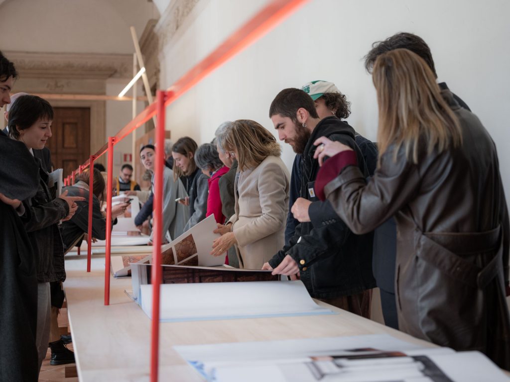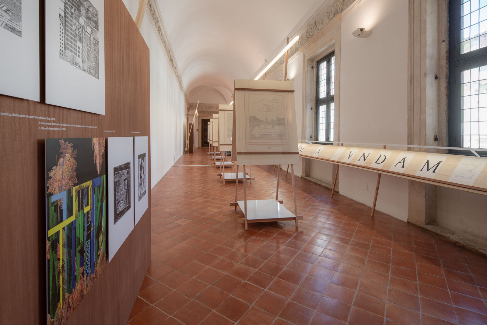 Non è ferma, non è esclusiva e può essere riproposta ai più. In ultimo, nel quarto lato, Catalogo in catalogo indaga, attraverso appunto la catalogazione portata avanti da Paola Binante insieme alle sue alunne e alunni, alcuni degli elementi del Palazzo urbinate, dai pavimenti alle porte fino ad arrivare ai rosoni del soffitto. Otto i libri in mostra che è un piacere sfogliare per scovare il particolare che viene valorizzato in maniera fluida e narrativa. Agli angoli delle Sopralogge sono presenti approfondimenti di architetti e autori contemporanei – Franco Purini, Sara Marini e Annalisa Metta – che, insieme a Molinari, indagano il monumento nella sua totalità e in relazione con le parti, consentendoci di <<guardare al palazzo come macchina universale e attuale>>, scrive il curatore. Un lavoro approfondito e accurato quindi, che, dall’inizio alla fine, ci riporta alla famosa espressione “una città in forma di palazzo, un palazzo in forma di città” che risuona nell’aria della città marchigiana.