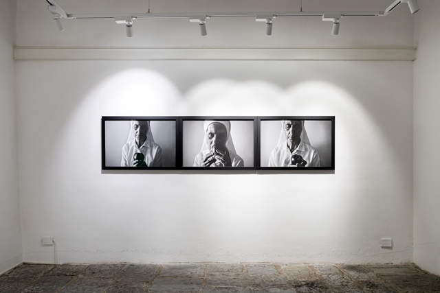 L’artista purifica quel gesto attraverso la ripetizione materiale dell’avvenimento. Una suora, una donna afferra la mela, la morde, la mastica, l’assorbe. Da questo momento, la prospettiva, il punto di vista cambia e la ribellione diventa presa di coscienza, consapevolezza della conoscenza.