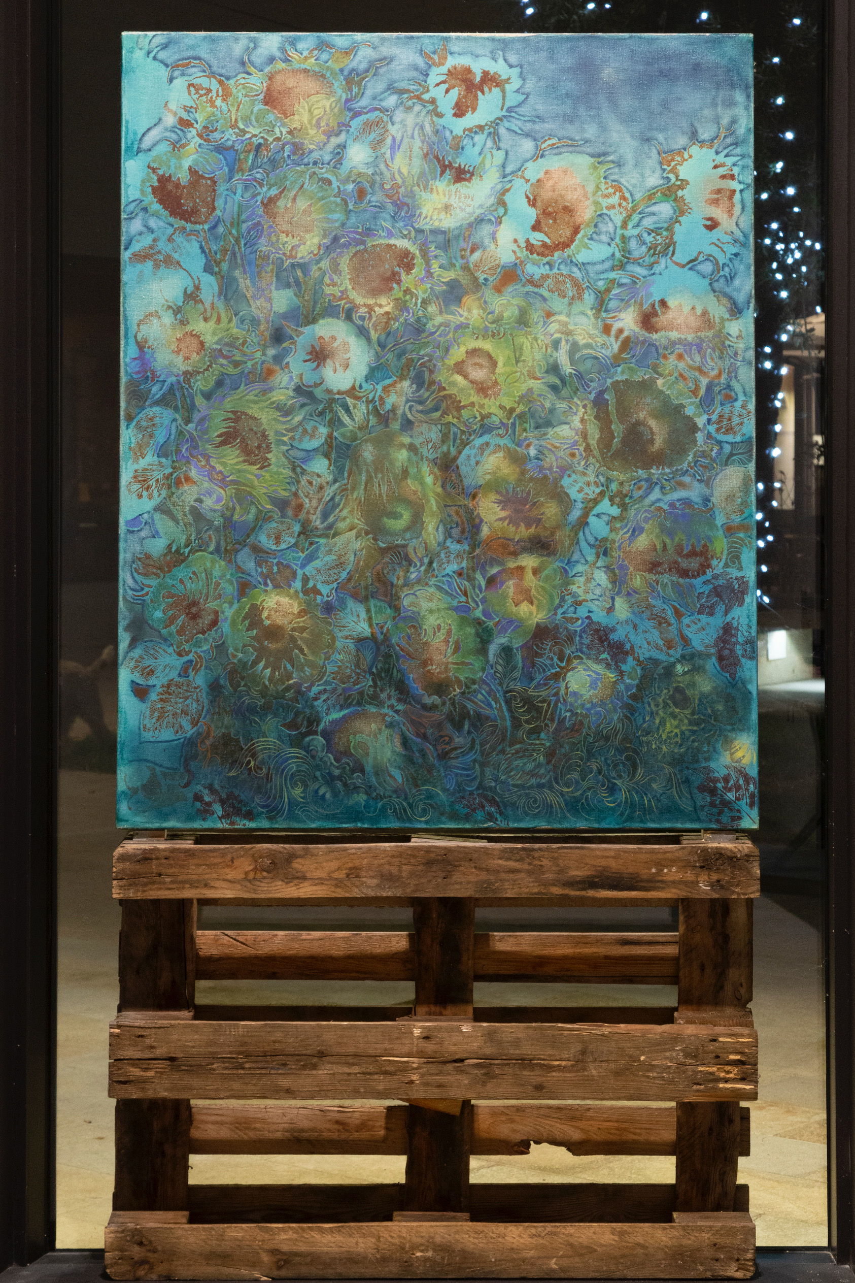 Marina bastianello gallery ospita fino al 22 gennaio “Sono proprio io, ma diventato pazzo”, la personale di Paolo Pretolani. Il titolo della mostra fa riferimento alla frase pronunciata da Van Gogh dopo aver osservato il ritratto che gli aveva fatto Paul Gauguin, anticipando i temi principali della mostra. Da una parte l’unico soggetto scelto da Paolo Pretolani, i girasoli, celebre nell’opera del pittore olandese, dall’altra, il processo di osservazione e straniamento che portano alla creazione dell’opera.
