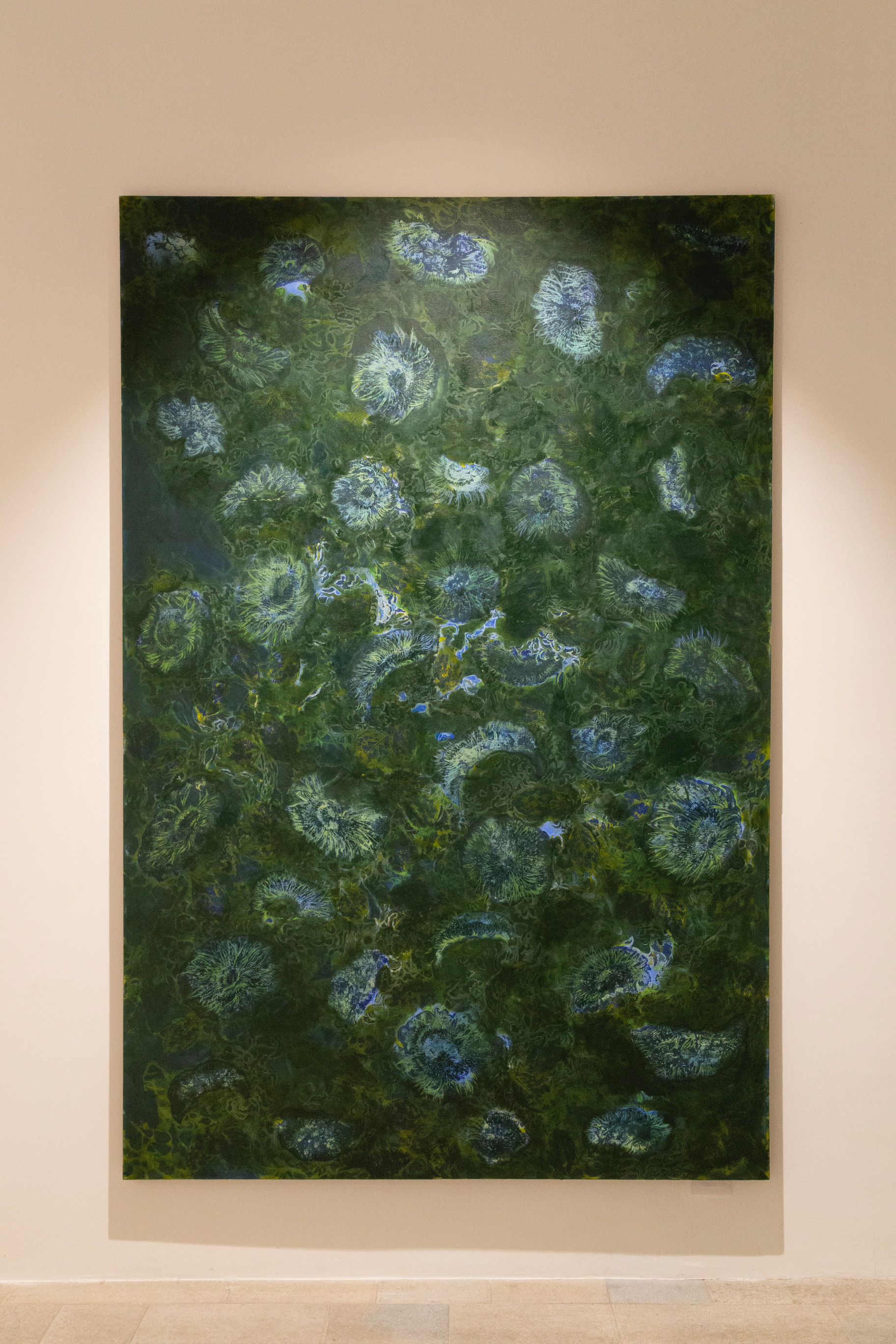 L’artista infatti parte dal soggetto di uno dei giganti dell’arte contemporanea e vi si confronta, senza soccombere, bensì riuscendo sapientemente a svelare le radici della sua pittura attraverso l’occhio della sensibilità contemporanea. L’occhio di Pretolani è stato costretto a guardare intensamente la stessa cosa, quel soggetto che non si riesce mai ad avere la certezza di aver visto compiutamente. Le opere in mostra diventano superfici su cui lo sguardo è costretto a perdersi per scavare nelle sue profondità, quasi “abissali”.
