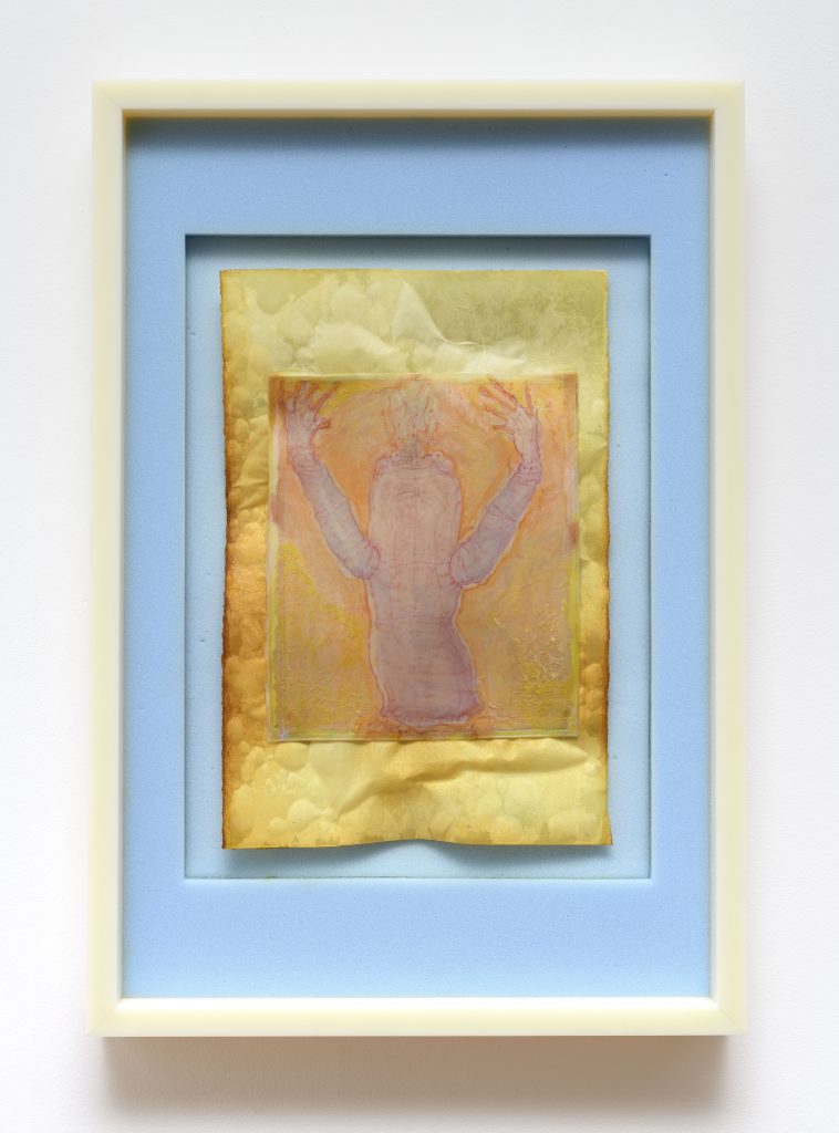 40 x 26 cm (64 x 44 cm framed). Acetati, polietilene-film, carta fritta, carta dielettrica, acrilico, ossidi, anilina, coagulante liquido, emulsione plastica in teca di nylon e gomma piuma