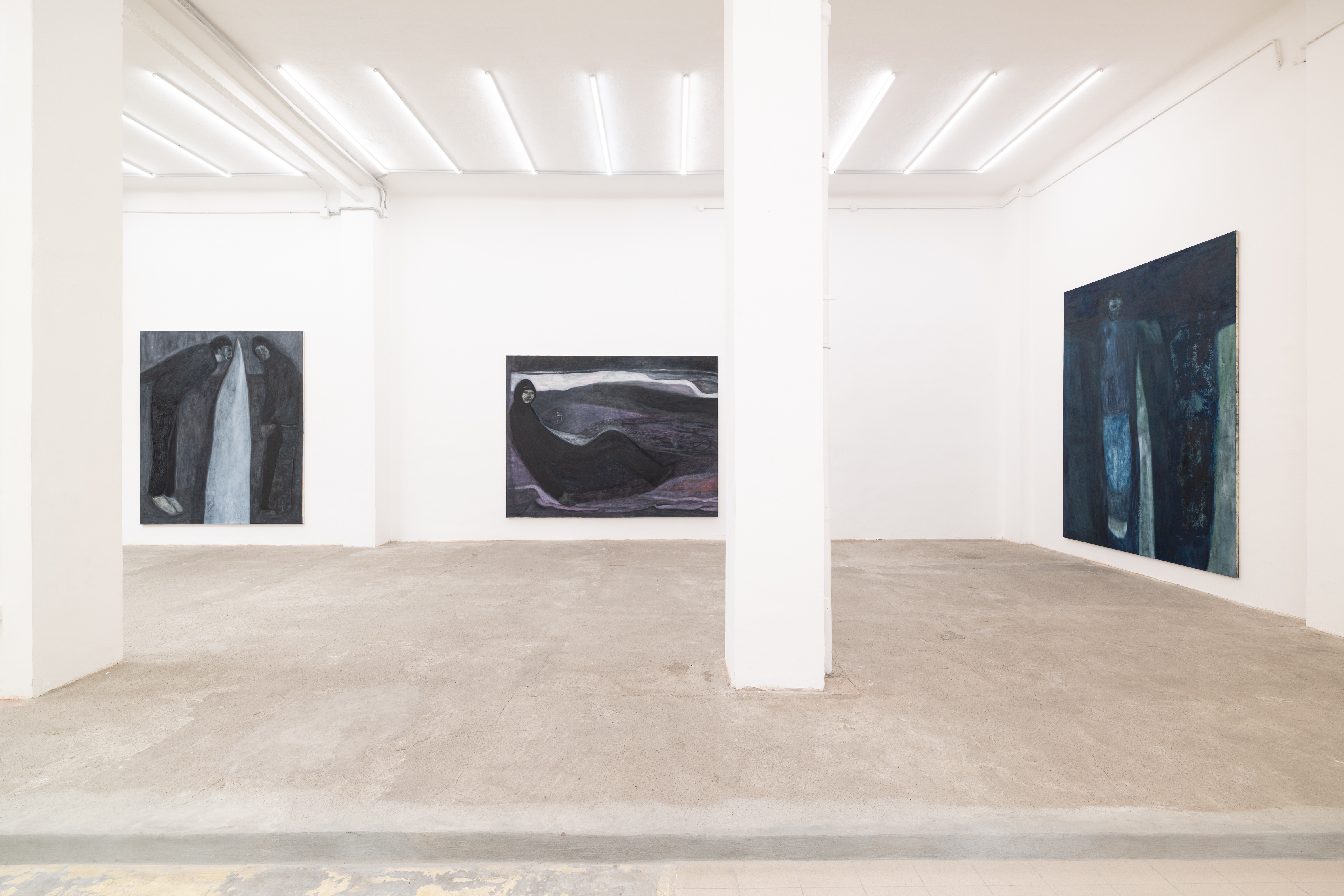 Varcata la soglia della galleria, l’impatto iniziale è di profonda quiete, complice la luce naturale che filtra dalle finestre e dal lucernario. Tuttavia, avvicinandosi alle tele, si innesca un magnetismo crescente che conduce verso la penombra. L’opera catalizza lo sguardo, isolandolo dal resto. Ogni rumore ambientale sembra dissiparsi per lasciare spazio a un silenzio meditativo.