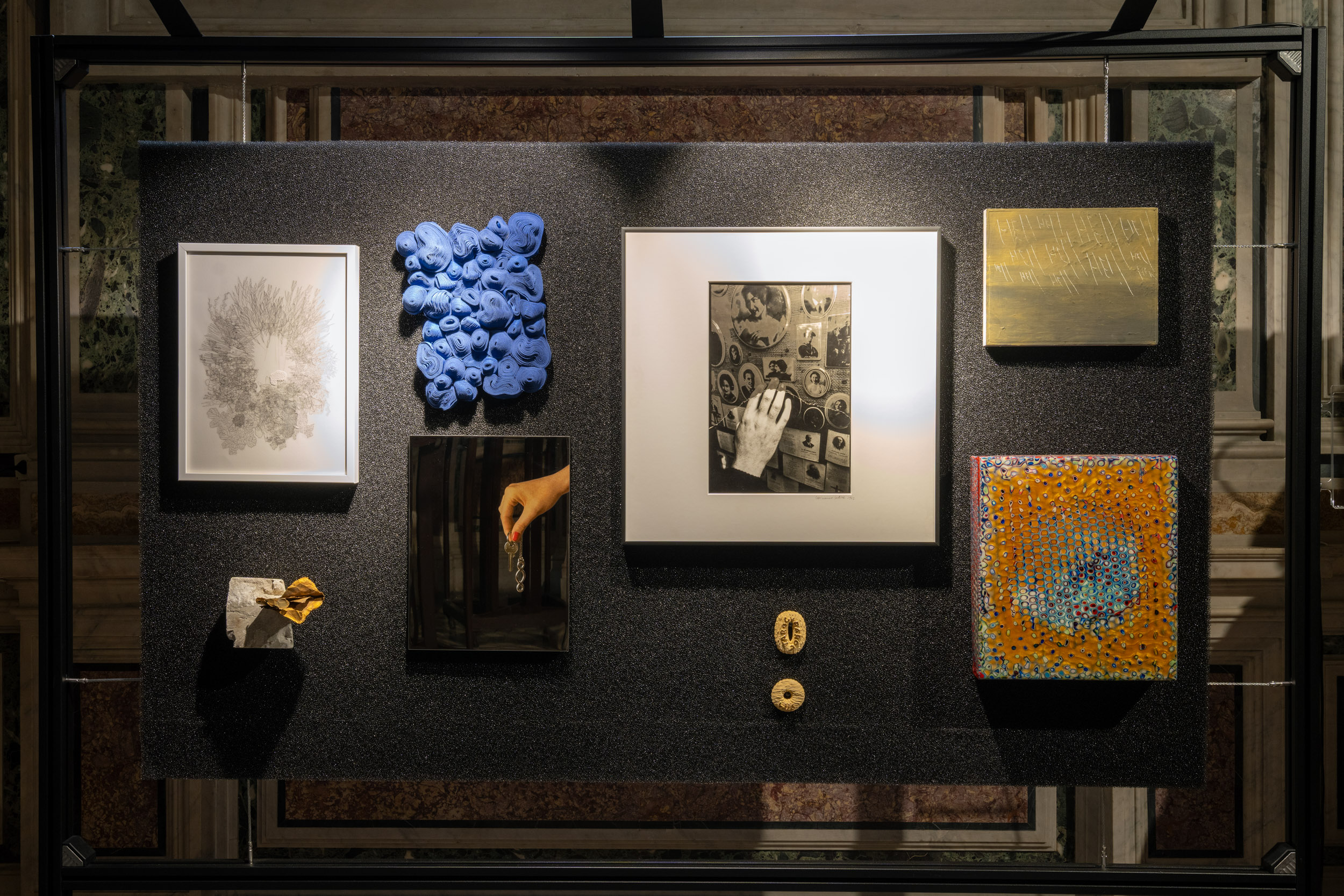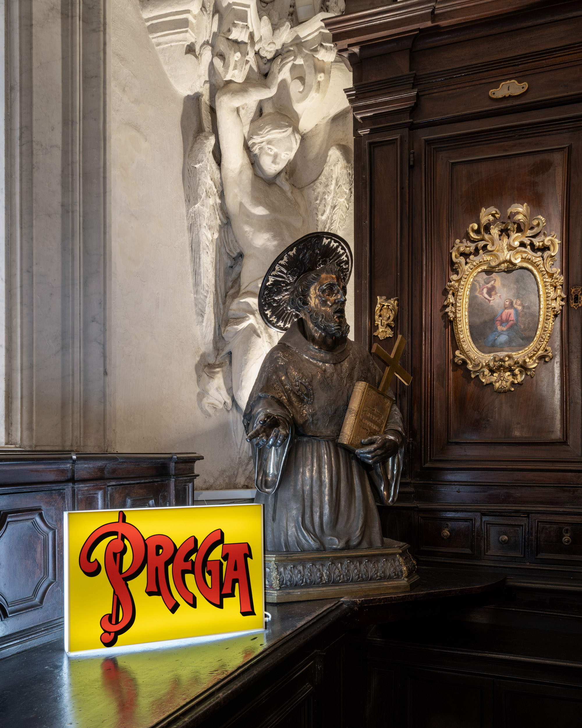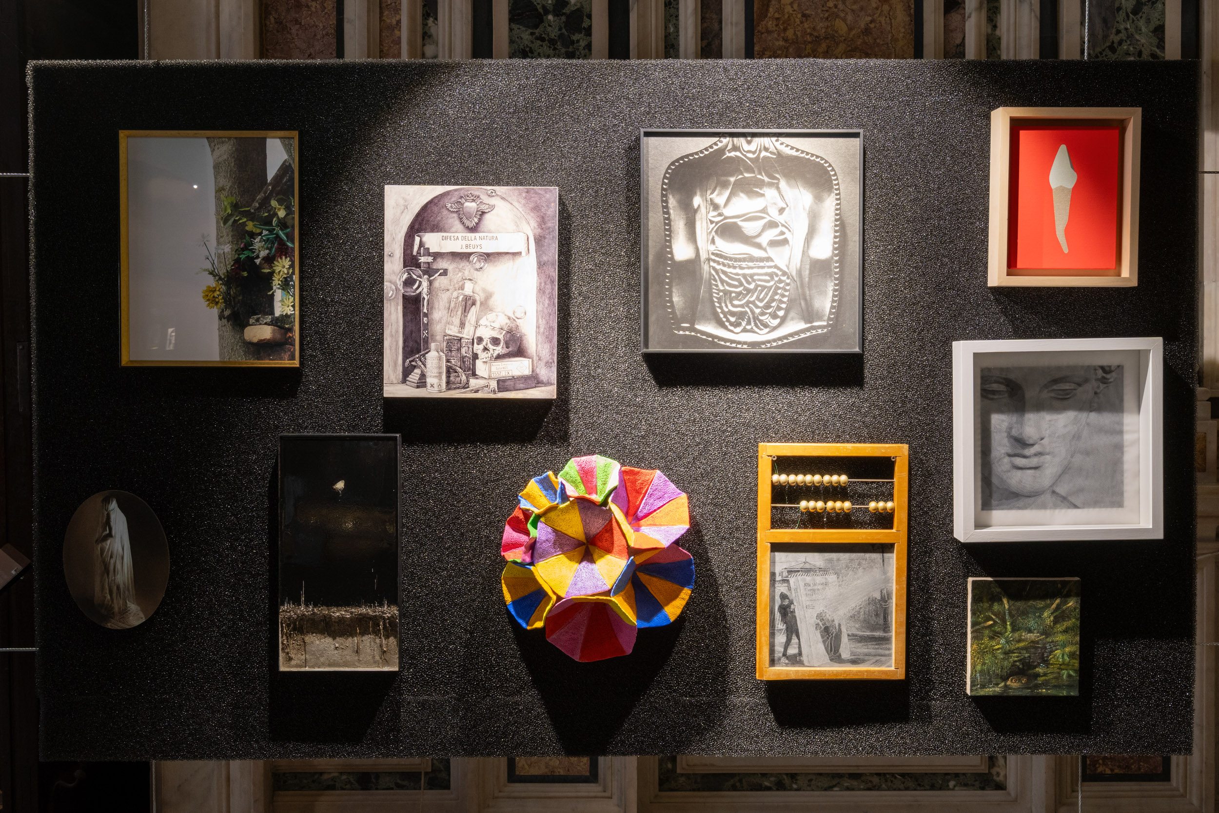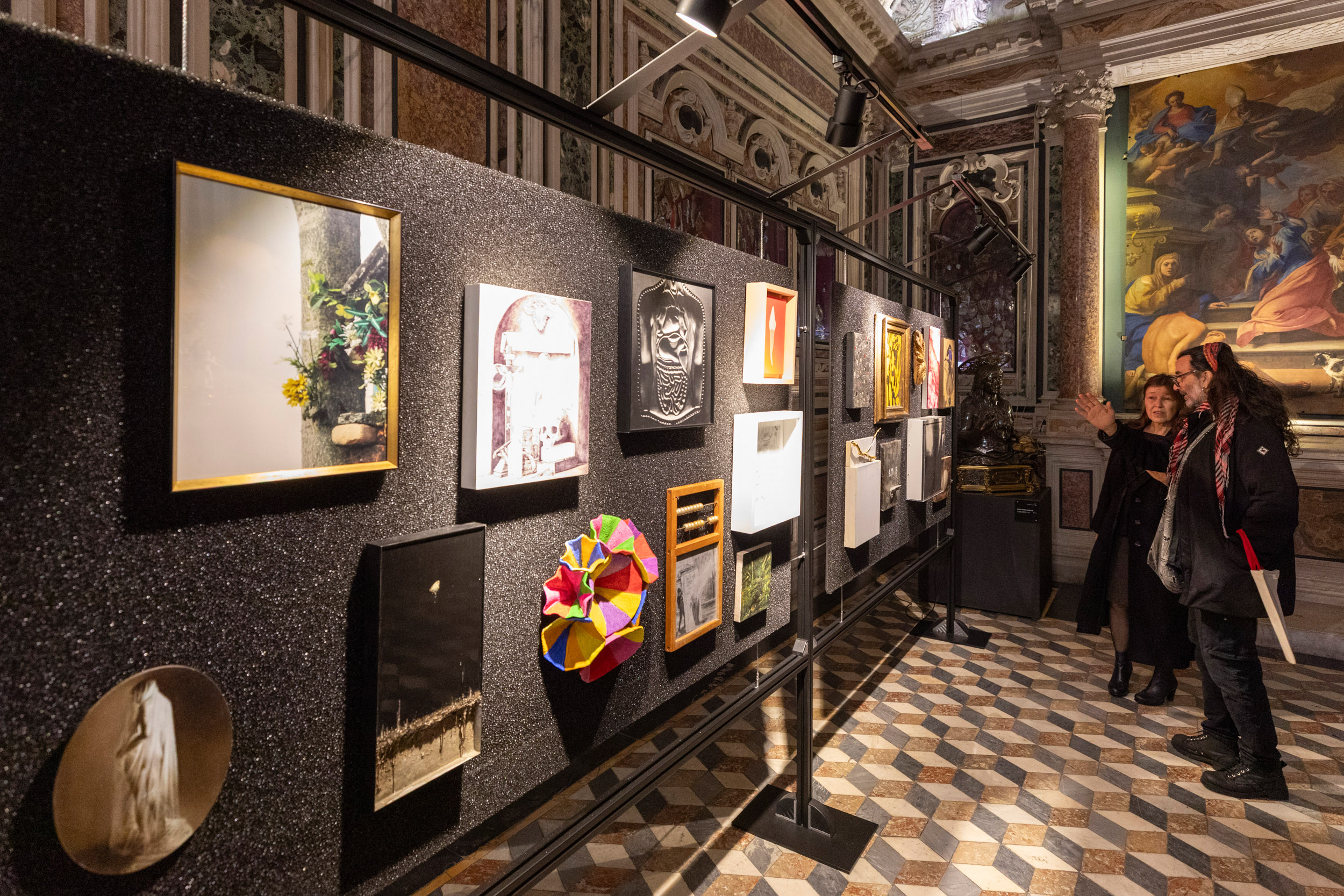 Lungo il percorso museale, dalla Cappella alle antiche Sacrestie, fino alle sale espositive, la mostra propone un allestimento che richiama l’accumulo emozionale dei luoghi di culto. I lavori degli artisti si susseguono come tappe di un pellegrinaggio laico, componendo una polifonia di stili, materiali e visioni che interrogano il visitatore sul proprio rapporto con la fragilità, il desiderio di protezione, la speranza.