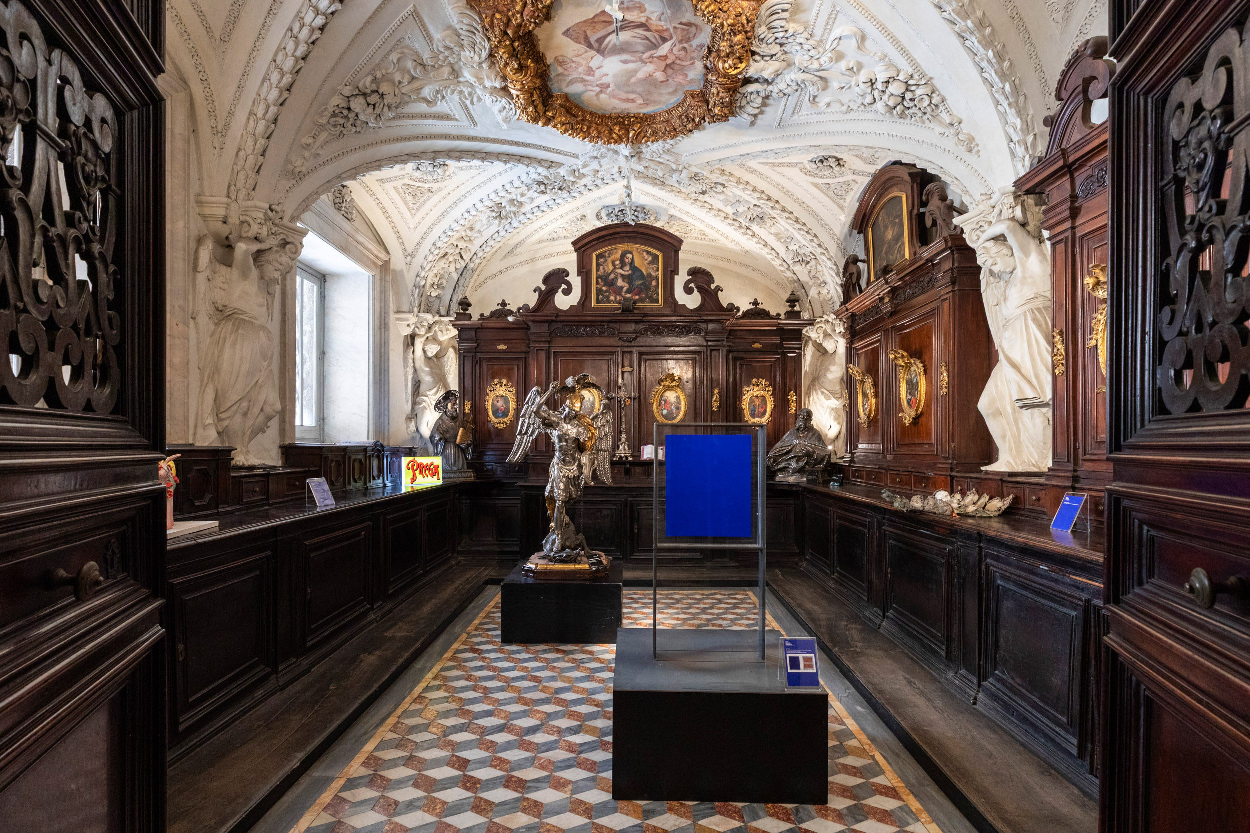 A Napoli, il Museo del Tesoro di San Gennaro accoglie Per Grazia Ricevuta – Visioni contemporanee dell’Ex Voto, un’affascinante esplorazione del tema votivo attraverso i linguaggi della contemporaneità. Curata da Alberto Mattia Martini e prodotta da D’Uva, la mostra, visitabile fino al 30 settembre 2025, espande e rinnova il progetto già presentato a Milano con nuove opere. Fulcro simbolico dell’esposizione è il monocromo blu di Yves Klein, donato dal grande artista nel 1958 al monastero di Santa Rita da Cascia e ora eccezionalmente esposto nella Sacrestia della Cappella, in dialogo con i dipinti di Luca Giordano. Un blu immenso e silenzioso che, nella penombra barocca, amplifica il suo richiamo al trascendente.