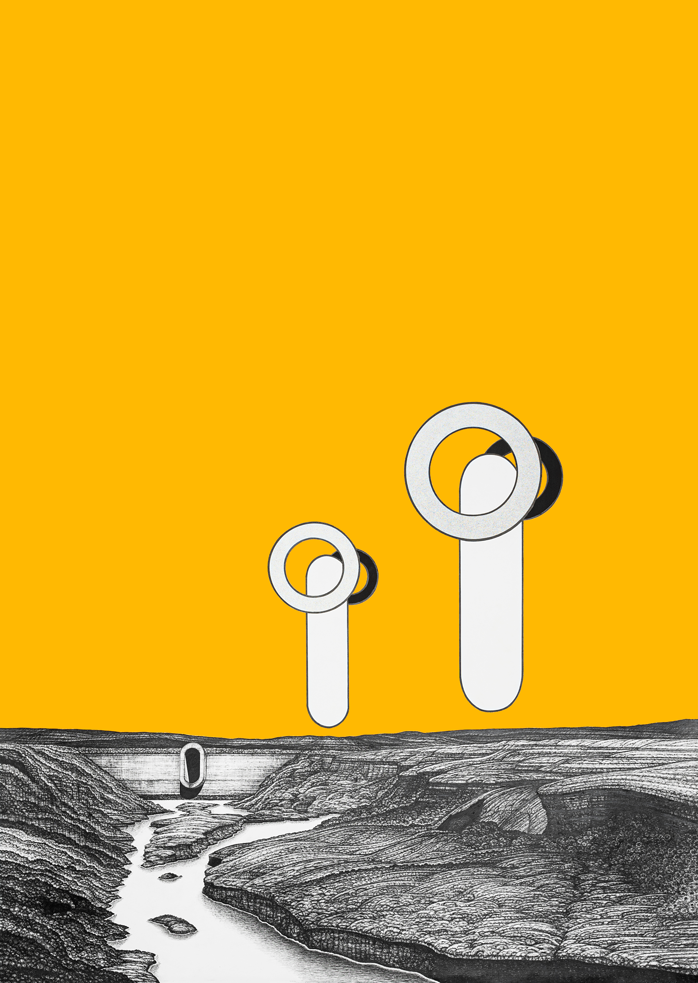 Anche Davide Benati e Nicola Toffolini utilizzano media tradizionali per i loro studi, uno prediligendo la pittura che sublima le iconografie della natura, l’altro il disegno con cui realizza paesaggi di mondi utopici dove tutto sembra riportarci a una condizione futuribile. Paolo Canevari ha fatto del riuso dei materiali un tratto distintivo del suo lavoro come testimoniato dalla serie in mostra, Black Pages, dove antiche cornici dorate custodiscono come reliquie fogli di giornale ricoperti di olio di motore combusto. Loris Cecchini indaga tematiche legate all’ambiente inteso come spazio di (ri)adattamento tra bisogni umani e nuovi materiali creando sculture con materiali insoliti dove emerge la sperimentazione tecnica nella realizzazione, mentre Giuliana Cunéaz crea ambienti di grande coinvolgimento attraverso l’uso di opere digitali e interattive con videoproiezioni e screen paintings, modellazione 3D e Intelligenza Artificiale.