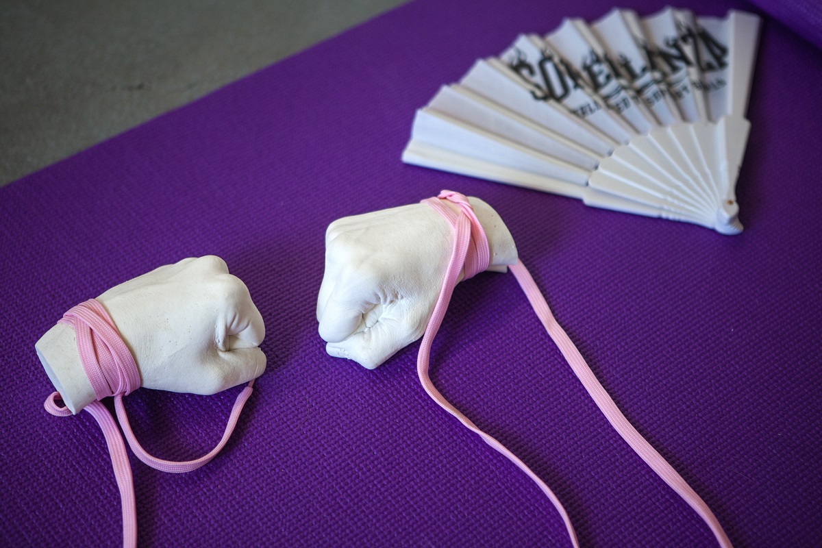 Presentata in occasione dell’opening della mostra, la performance Prophētai (2022) di Ginevra Petrozzi mette in scena un incantesimo che parte dal racconto del futuro perfetto delle partecipanti, espresso al tempo presente, come se si stesse effettivamente manifestando in quel momento. I racconti hanno uno scopo preciso, ovvero quello di cambiare le previsioni algoritmiche che le partecipanti stesse ricevono sui propri smartphone, trasformandosi in “streghe moderne” alle perse con gli effetti del tecno-capitalismo. Cercando di comprendere sino a che punto sia possibile manipolare gli algoritmi e uscire dalla propria bolla digitale, l’artista, durante tutta la durata della mostra, invita il pubblico a prendere parte all’incantesimo sottoponendo il proprio telefono all’ascolto di voci registrate, così da poterne osservare gli effetti nel tempo.