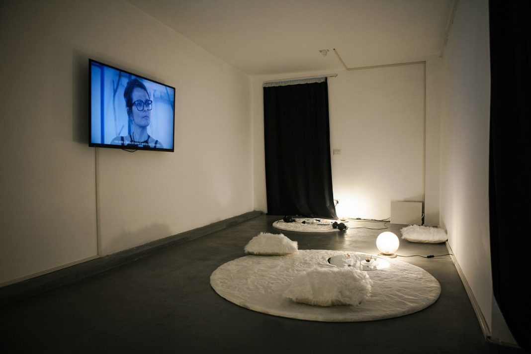 Con Chi è Louisa (?) (2022) Giulia Tomasello esplora il mondo della salute intima femminile: Louisa è una donna qualsiasi che ogni giorno affronta problemi legati al genere che le è stato attribuito, al suo corpo e alla sua intimità, ma anche il dispositivo narrativo dell’artista per dare voce a tabù legati al corpo femminile, al suo funzionamento, ai suoi genitali e ai suoi fluidi. Se da una parte la pratica dell’artista si basa sulla creazione di nuovi strumenti di rivendicazione ed esplorazione nell’ambito della salute e della autocura, è nella pratica comunitaria della discussione, della ricerca e del confronto tra donne che si esprime l’intervento. Protagoniste sono così le Louisa incontrate a Torpignattara, le cui discussioni sono proiettate nel grande monitor centrale all’interno di una delle sale, mentre accolti sui tappeti a terra ci sono tre gruppi di oggetti, raccontati in maniera indiretta dalle discussioni delle stesse Louisa.