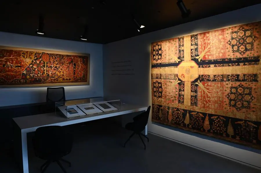 L’esplorazione della Persia antica continua per mezzo delle opere tessili partendo dalla capitale Isfahan, dalla quale provengono spettacolari tappeti fioriti a giardino, passando per Heritz con i suoi tappeti in seta geometrici e Kirman che sviluppa una decorazione vegetale più essenziale e rarefatta di nobilissima indole, raggiungendo, infine, Tabriz a nord con il suo gusto più schematico e geometrico che si avvicina a quello del Caucaso. All’interno del percorso museale sono presenti alcuni tappeti che risalgono alla fine dell’Ottocento o inizio Novecento, con trionfi naturalistici di gusto quasi Art Nouveau. Inoltre, il percorso si completa portando in mostra pagine miniate e rari oggetti in metallo che permettono di avere uno scorcio sulle attività quotidiane del periodo.