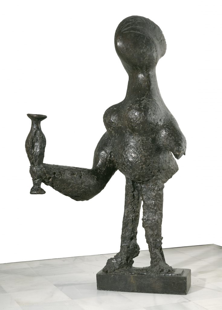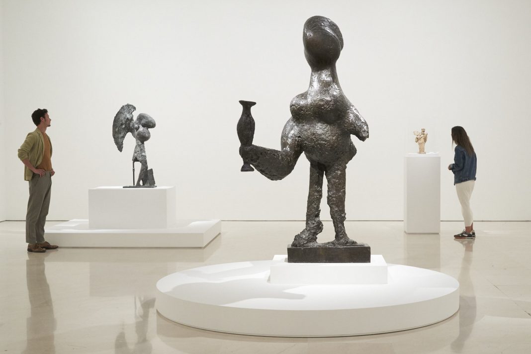 Al Museo Picasso di Malaga sono esposti alcuni tra i suoi primi lavori, come Donna seduta, la prima opera in creta eseguita nel 1902, nello studio dell’amico scultore Emili Fontbona a Barcellona, e Testa di donna (Fernande) del 1909, dai tratti decisamente cubisti. Tra la fine degli anni Venti e l’inizio degli anni Trenta Picasso realizza antropometrie in legno o modellate in gesso, cinque di queste opere furono esposte nel Padiglione della Spagna all’Esposizione Universale di Francia nel 1937. Nell’Atelier di Rue des Grands Augustins a Parigi Picasso aveva lavorato tra il 1937 e il 1955. Li scolpisce opere riguardanti scene di vita quotidiana, come testimoniano anche i dipinti del periodo. Dalla fine degli anni Cinquanta sperimenta con l’assemblaggio di vecchi legni, mobili, lamiere, opere in cui il vuoto ha la stessa, o maggiore, rilevanza strutturale dei volumi. Nel decennio successivo si confronta con la creazione di sculture di grandi dimensioni, grazie alla collaborazione con l’artista e assistente Carl Nesjar che trasforma i disegni e i bozzetti di Picasso in progetti scultorei di grandi dimensioni. Insieme hanno realizzato più di 30 sculture, installate negli spazi pubblici di varie città. In mostra è esposto un modello per la scultura del Richard J. Daley Center, realizzata nel 1964 e da diversi anni installata davanti al Civic Center di Chicago. Un’opera imponente, alta 20 metri in acciaio, un volto geometrico i cui volumi sono suggeriti dai contrasti tra pieno e vuoto.