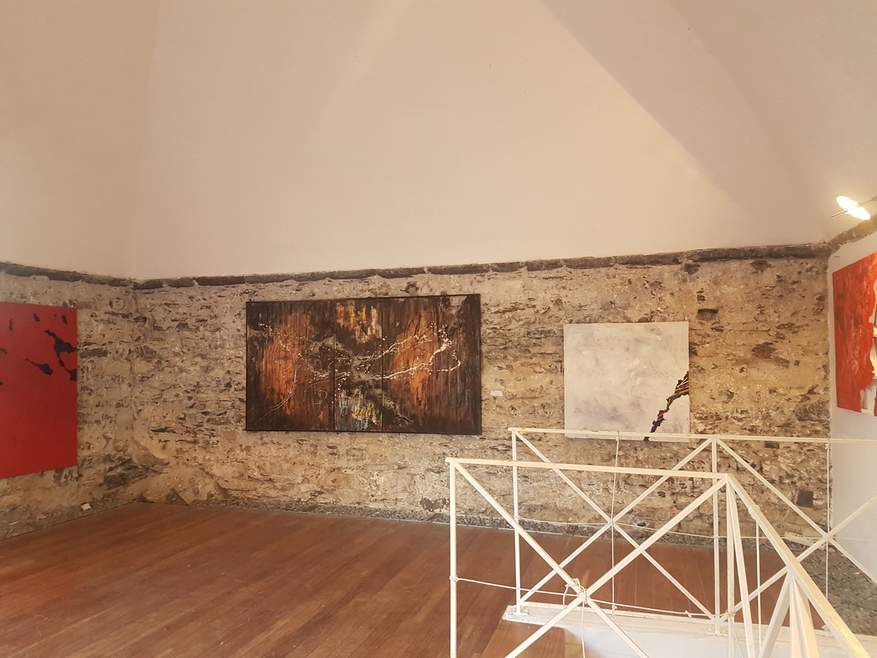 Un connubio, quello tra Pillino Donati, artista esuberante ed espressivo, e il Festival, che appare evidente sin dal primo sguardo alle sue opere: i “muri” materici, frammentati e caratterizzati da colori vividi e contrastati comunicano con lo spettatore, travolgendolo. Una forma espressiva ancor più enfatizzata dalla splendida scenografia di pietra e mare del Castello della Dragonara, che grazie a un sapiente allestimento ospita le opere sia nelle proprie sale interne che nelle terrazze esterne. Il percorso esprime così in maniera ancor più evidente la relazione tra la città e l’artista; «tutto è iniziato da qua, osservando i muri delle case del borgo» ha enfatizzato Pillino Donati durante l’opening del 12 agosto.