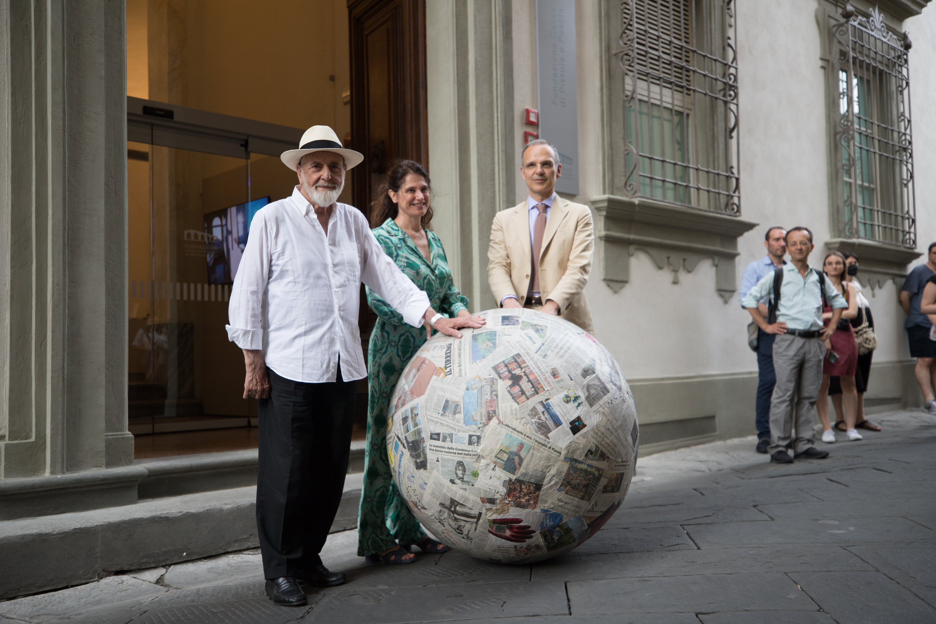 «Nei cinque passi della mostra Pistoletto Pistoia organizzata da Pisotia Musei abbiamo cinque luoghi differenti che rappresentano una storia: Palazzo dei Vescovi, Palazzo Fabroni, la Chiesa di San Leone, la Biblioteca Fabroniana e poi l’Osservatorio astronomico sulla montagna. In questa storia noi portiamo i nostri indicatori, gli attivatori [OK?] del futuro fino alla parte alta in cui la scienza guarda il cielo. E qui sabato scorso l’arte e la scienza si sono unite in un incontro tra l’artista e lo scienziato per portare un messaggio comune, quello della formula trinamica sell’equilibrio».