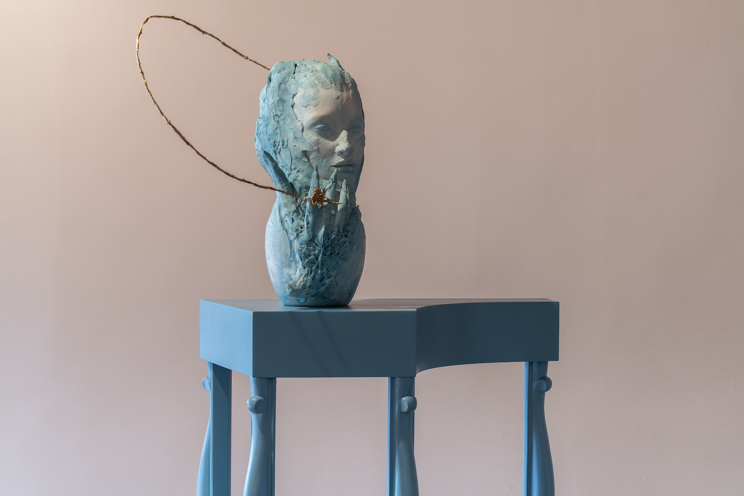 Una metamorfosi. Questo è un concetto cruciale che ci accompagna in tutta la mostra. La rinegoziazione del rapporto tra materia, oggetto e spazialità e l’indagine su come il valore di certi materiali venga costruito e trasmesso nel tempo sono al centro della pratica di Leelee Chan. Blindfold Receptor (Crawling Jewel -Moss III) unisce elementi naturali e artificiali, antropomorfi e costruiti. Così anche Emiliano Maggi e Marta Roberti lavorano su una sorta di ibridazione tra regni, umano, animale e vegetale, «coinvolgendo lo spettatore in una catena continua di rimandi visivi e concettuali in cui storia, mito, leggenda e saggezza popolare si intrecciano armonicamente, creando lavori onirici e oltre la soglia del reale.»