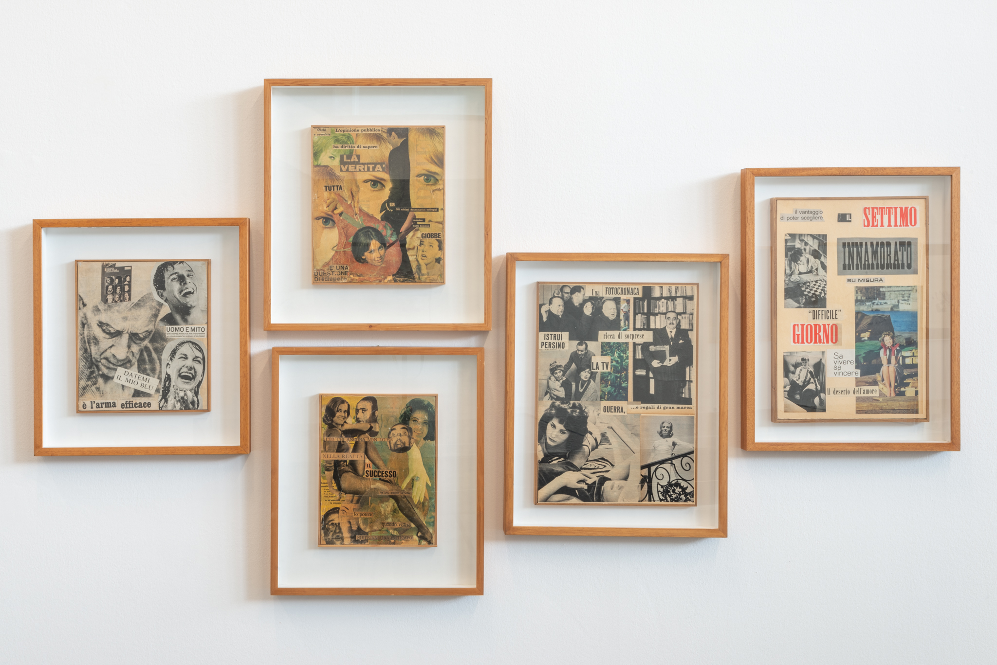 In Poesie e no vediamo i lavori di Lucia Marcucci che attraversano i decenni degli anni Cinquanta e Sessanta, quelli del boom economico e dei primi movimenti di protesta, a partire da studenti e donne. Gli artisti verbo-visuali proprio a questa “massa” guardavano e a questa si rivolgevano, a un “proletariato della cultura”. Lucia Marcucci sugella l’incontro tra cultura alta e cultura bassa nei suoi lavori, con testo e immagine, pittura e collage. Le sue opere raccontano un periodo storico fatto di cambiamenti sociali e politici. Prese di coscienza, tra dramma e scherzo, attuali ancora oggi. Attraverso la manipolazione dei mass media, delle immagini e del linguaggio pubblicitario, dello slogan, l’artista crea nuovi messaggi. Nuove interpretazioni, a partire dalla critica e dalla contestazione, sempre con un velo ironico.