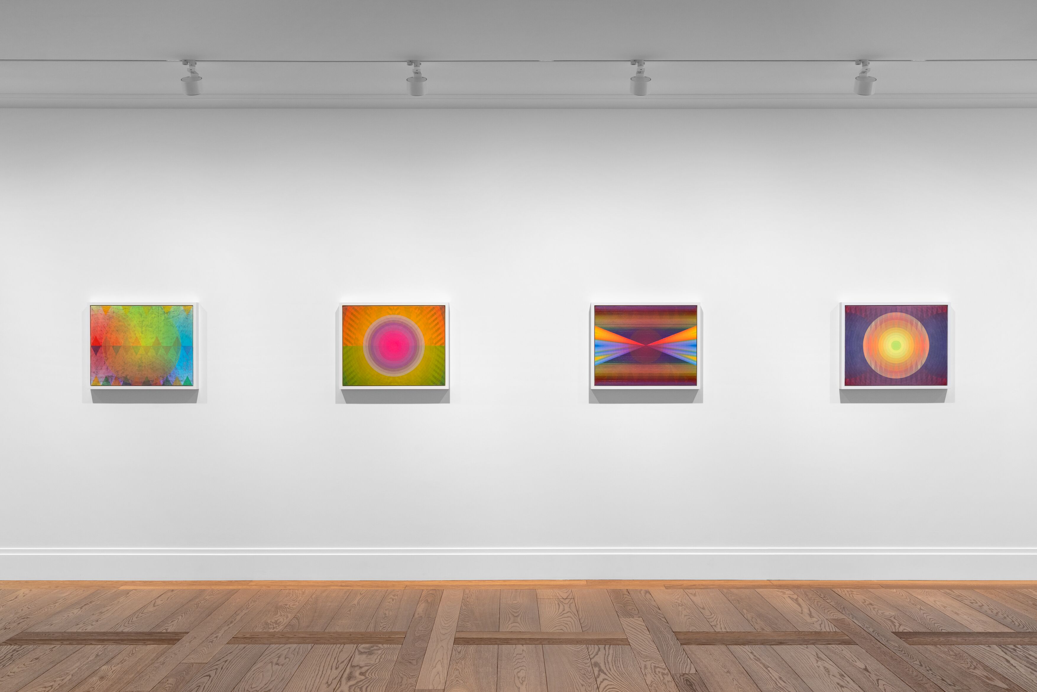 Appena si entra nello spazio espositivo, il gioco di combinazioni cromatiche e di materiali crea un ambiente allegro, quasi psichedelico, grazie alle geometrie e all’accostamento di sfumature e forme in cui il rigore della linea si unisce alla fluidità della curva. La produzione si rifà anche al concetto di “psicoprismatismo”, ovvero quella «Capacità che hanno la luce, i colori e i prismi di rivelare simultaneamente più realtà». A questo proposito, l’artista parla di un approccio al colore «Alchemico e spirituale», stabilendo un parallelismo tra l’utilizzo di centinaia (fino a 400) sfumature differenti, che l’occhio percepisce simultaneamente, e il suo tentativo di mantenere un linguaggio rispettoso, capace di esistere su più livelli di significato.
