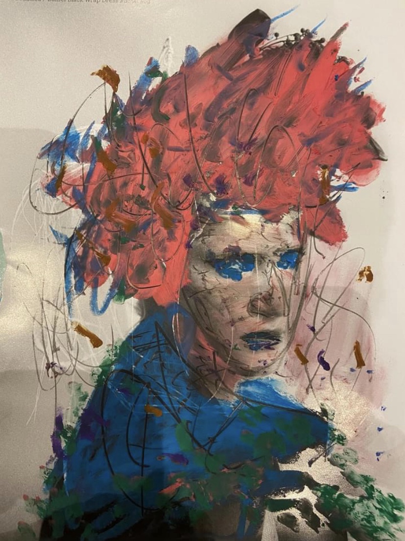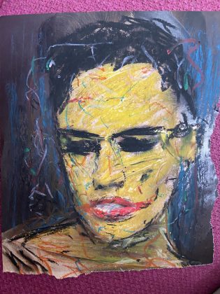 Scognamiglio lavora con pittura acrilica, matita e pastelli a olio, dipingendo su strappi di giornali di moda. Seleziona con cura primi piani di modelli e modelle, tagli frontali, semplici e puliti. Strappa dai giornali con noncuranza i fogli e li “ri-dipinge”, con un intento espressionista, distante dal pop, per scavare oltre la superficie esteriore dei suoi personaggi. Da questo stridore tra il patinato e l’inconscio, tra un passato preveggente – le tele che parlano di profezie – e gli strappi odierni carichi di furore, nasce l’energia vitale dei soggetti protagonisti della pittura e della fotografia di Scognamiglio.
