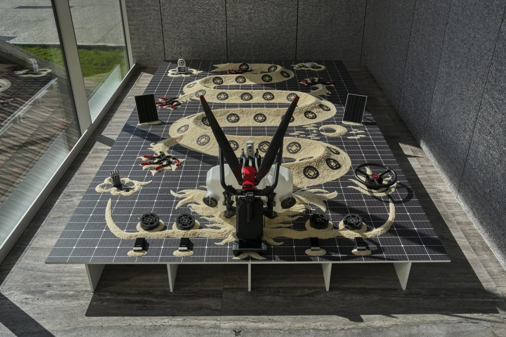 In questo scivolamento temporale si insinua una riflessione più ampia sull’accelerazione tecnologica, che imprime ai dispositivi e alle infrastrutture un’inesorabile data di scadenza, un ciclo di vita sempre più breve, capace di rendere obsolete anche quelle che, a un occhio inesperto, possono sembrare innovazioni avanzatissime. Quella descritta da Cao Fei è, al contempo, realtà fattuale e condizione paradossale, nella quale il presente si comprime a tal punto da divenire immediatamente passato e rispetto al quale ogni tentativo di tenere il passo risulta fisiologicamente destinato al fallimento. La mostra è dunque un paesaggio attuale e desueto, abitato da tracce di un progresso che, nell’avanzare, intravede già la produzione delle proprie rovine.