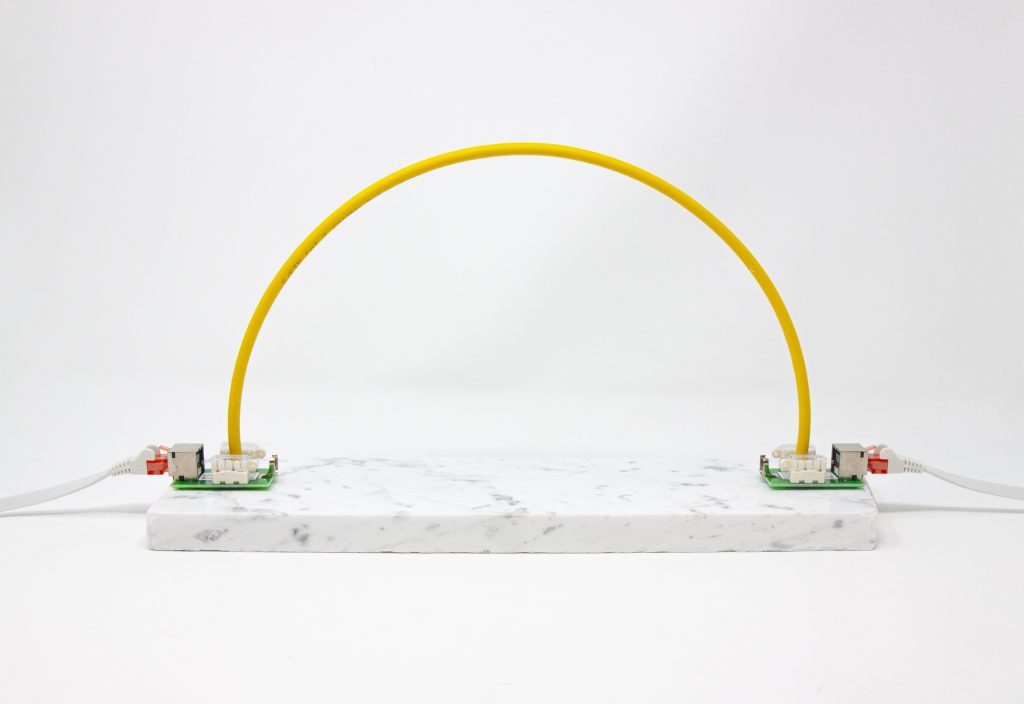Bent Network (Yellow Arch), Ethernet cable on marble, 35cm x 10cm x 18cm, 2020