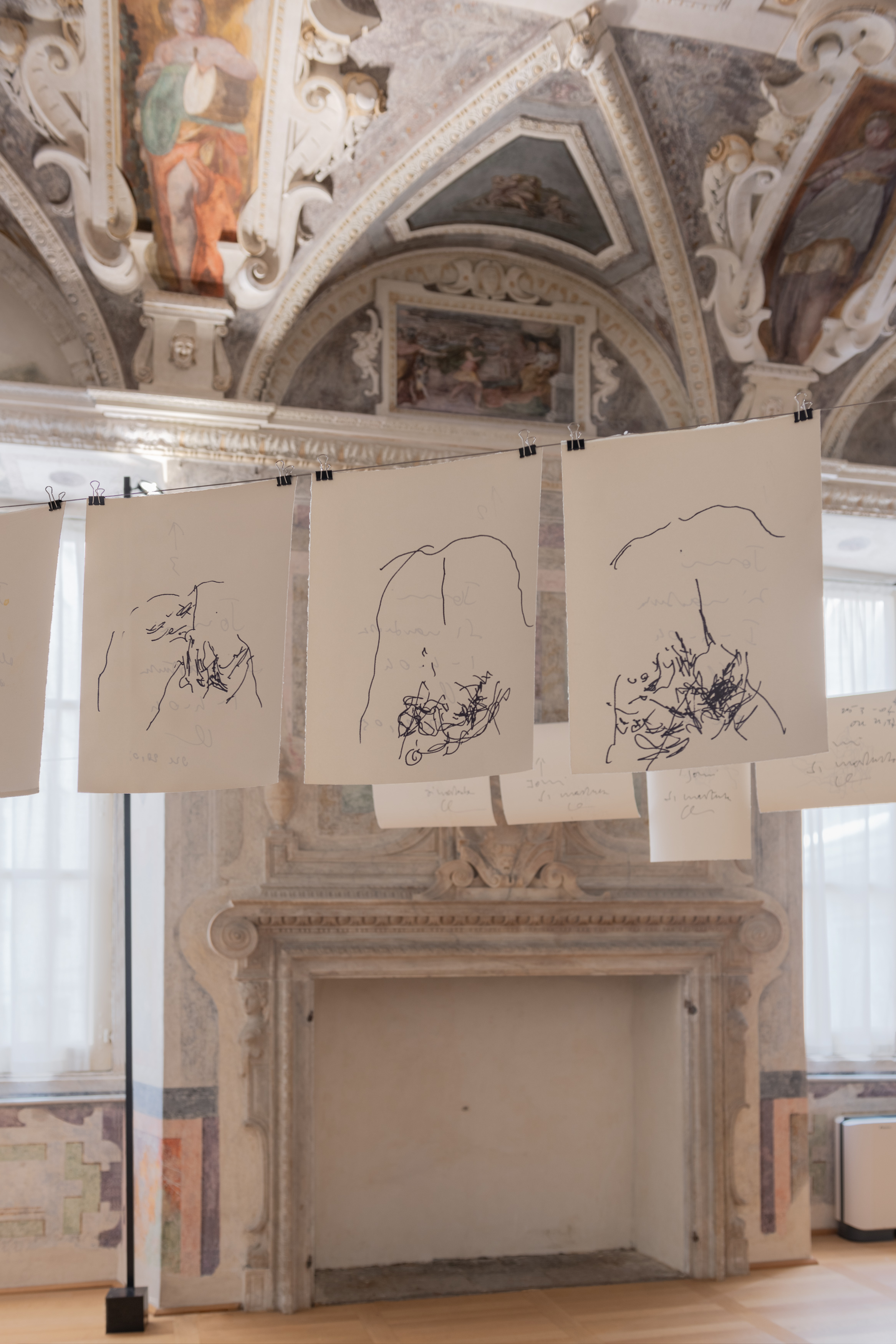 Dopo tutto quello che si è visto, letto e ascoltato, quest’installazione è un mettersi in gioco – tanto per Levi, quanto per i curatori – con la parte più diretta di un sé espresso senza freni. Carta, penna e schizzi di sperma.
