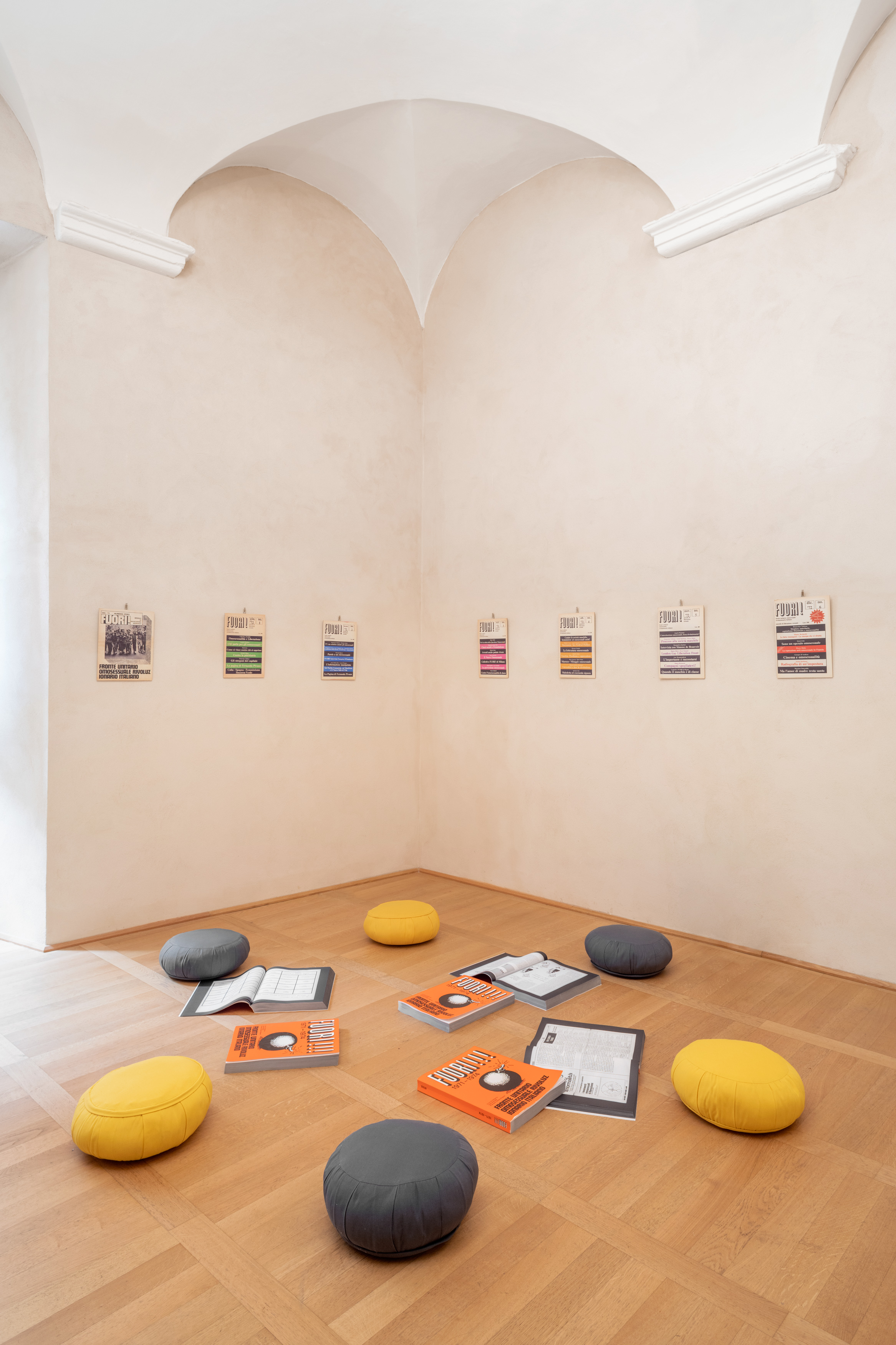 Nella sala a fianco un altro valido apparato: la carrellata di prime pagine del mensile “di liberazione sessuale” FUORI!, organo stampa dell’omonimo movimento. Nei titoli i temi caldi che scioglievano alcuni tabù anni ’70. Tra i tanti, utilizziamo anche qui tutta l’arbitrarietà che ci compete per estrapolarne uno solo: “L’intervista: Sono un operaio omosessuale”. Preistoria, o dopo 50 anni potrebbe fare ancora notizia?