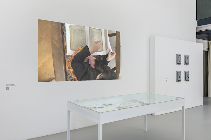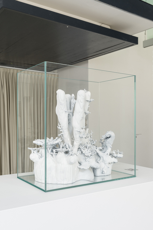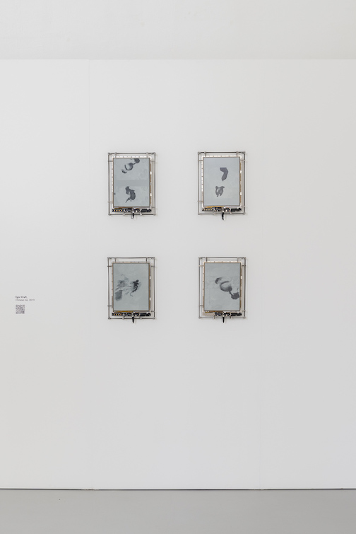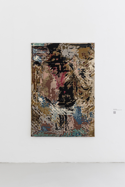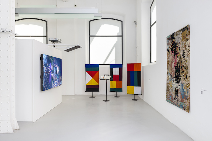 «Nonostante i dieci progetti siano molto diversi tra loro abbiamo cercato di inglobarli in uno spazio il più organico possibile, in cui è possibile passare facilmente da un orizzonte all’altro senza per forza essere costretti a suddividere per categorie e aree tematiche, anche perché come accennavo, spesso i temi si sovrappongono tra di loro. Lo spettatore che si aspetta di assistere ad una mostra dalla forte connotazione tecnologica, resterà sorpreso nel vedere come spesso essa sia celata dietro opere dalla forte presenza fisica e oggettuale. Questo succede perché la mostra si interroga principalmente sul concetto di interfaccia tecnologica. Spesso immaginiamo l’intelligenza artificiale come un agglomerato di cavi, righe di codice e chip al silicio ma la sua pervasività fa sì che essa ormai si manifesti anche attraverso forme non direttamente riconoscibili, per cui ci si può trovare di fronte ad un arazzo prodotto in India, come nel caso dell’opera di Irene Fenara, Three Thousand Tigers, o ad una pubblicazione editoriale come nel caso di Epitaphs for the Human Artist, dei Numero Cromatico».
