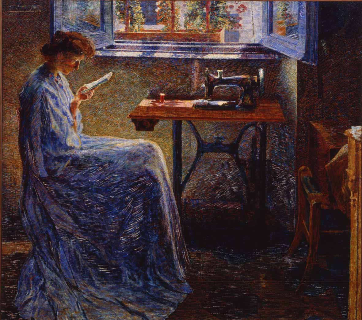 È invece in mostra, ancora del ’09, Il Romanzo di una cucitrice, opera quasi tardodivisionista, al punto che l’autore, segnala D’Agati, viene additato non senza gusto per il paradosso come “vecchio futurista”. Per arrivare al Ritratto di Fiammetta Sarfatti: saggio della stagione “barbarica” (il termine è di Boccioni), orgia di colori eccitati ed eccitanti del 1911 che si ammira nonostante si spinga un anno oltre la datazione circoscritta per la mostra. Fiammetta era la piccola figlia di Margherita, con la quale l’artista ebbe una liaison presto incompatibile con l’apparire di “eritemi” sulla pelle della musa di Novecento al solo pronunciare la parola Futurismo.
