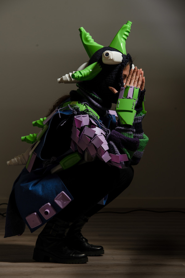 L’opera Toletta 1825 mi è sembrata incredibilmente suggestiva: i colori rosa cangianti, le forme dei corpi femminili e la presenza di piccoli flaconi di essenze e creme profumate hanno ispirato un mio nuovo progetto. La stessa cosa è avvenuta per la serie delle due opere dal titolo Corazze presenti in mostra. Due presenze, due corpi che si proteggono e nello stesso tempo “evocano” citazioni rubate da libri antichi e polverosi, da memorie di collezioni di antropologia.