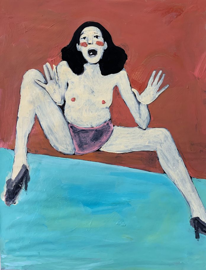 «Un clima che si ritrova nell’immaginario evocato da queste opere – piccole tempere e acrilici realizzati su fogli di riviste e giornali, polaroid ritoccate e acrilici di grande formato realizzati su carta fotografica – che rimandano, però, anche a una particolare poesia delle piccole cose, decisamente intima e quotidiana», si legge nel testo critico. «A vederli tutti insieme questi lavori – che come ricordavamo fanno parte di tre serie distinte – sembra quasi di trovarsi dentro un romanzo sentimentale e autobiografico in cui è possibile riconoscere le nostre forme di vita catturate nel trauma di una transizione che sospende tutti noi tra il non più e il non ancora», continua Martino, che fa riferimento a un processo di immedesimazione. «Riconoscersi, quindi, come probabilmente si riconosce l’artista in questa sorta di auto narrazione che prende la forma di un’analisi individuale e collettiva. Gli amori e le amicizie, il sesso e la solitudine, le abitudini e la noia, sono i temi e i sentimenti di un mondo che l’artista ha provato a catturare durante i mesi della pandemia, quando reclusi nelle nostre case ci siamo improvvisamente trovati orfani di una vita che sembrava irrimediabilmente perduta».