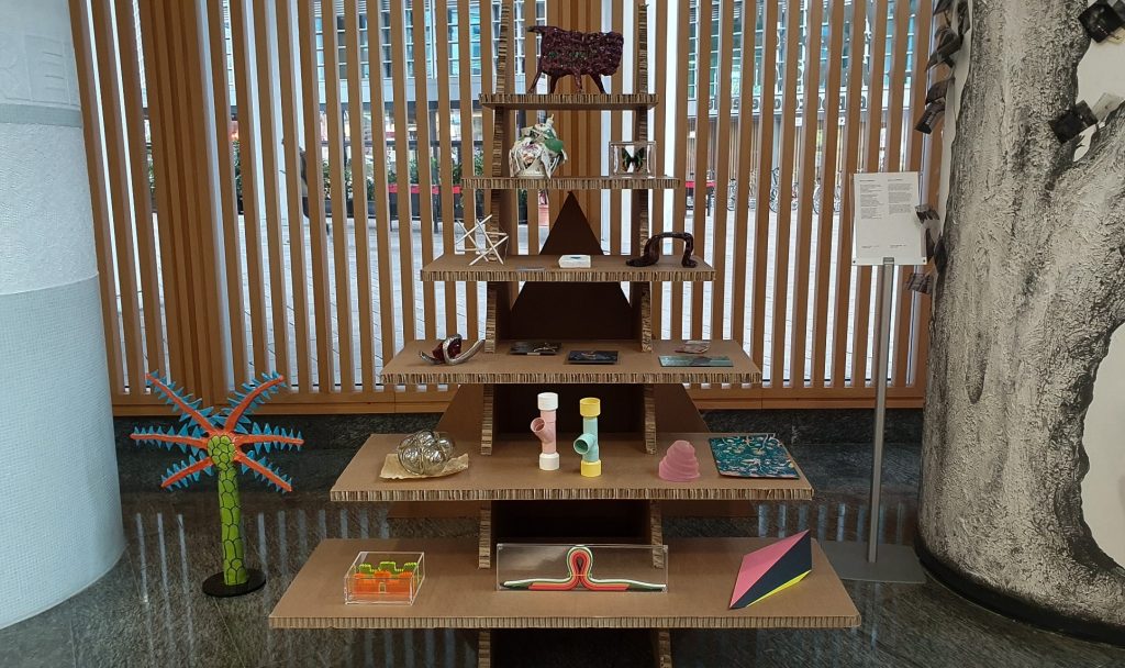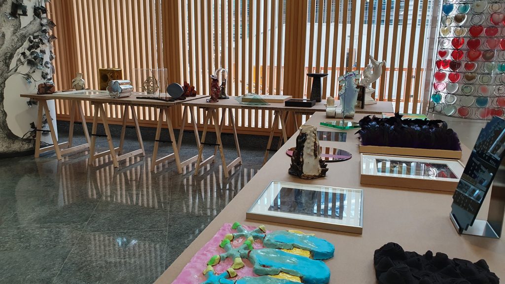 Pittura, scultura, disegno, ceramica, ferro e vetro, sono allestiti nello spazio ricreando la dimensione in cui la creatività prende forma e vita: lo studio dell’artista. Ci racconta a questo proposito Rusconi: «il percorso espositivo si articola nelle scale, che Bite&Go ha assunto come identità grafica dal 2021, tavoli e cavalletti. Ho voluto reinterpretare l’epoca ottocentesca con gli occhi del presente».