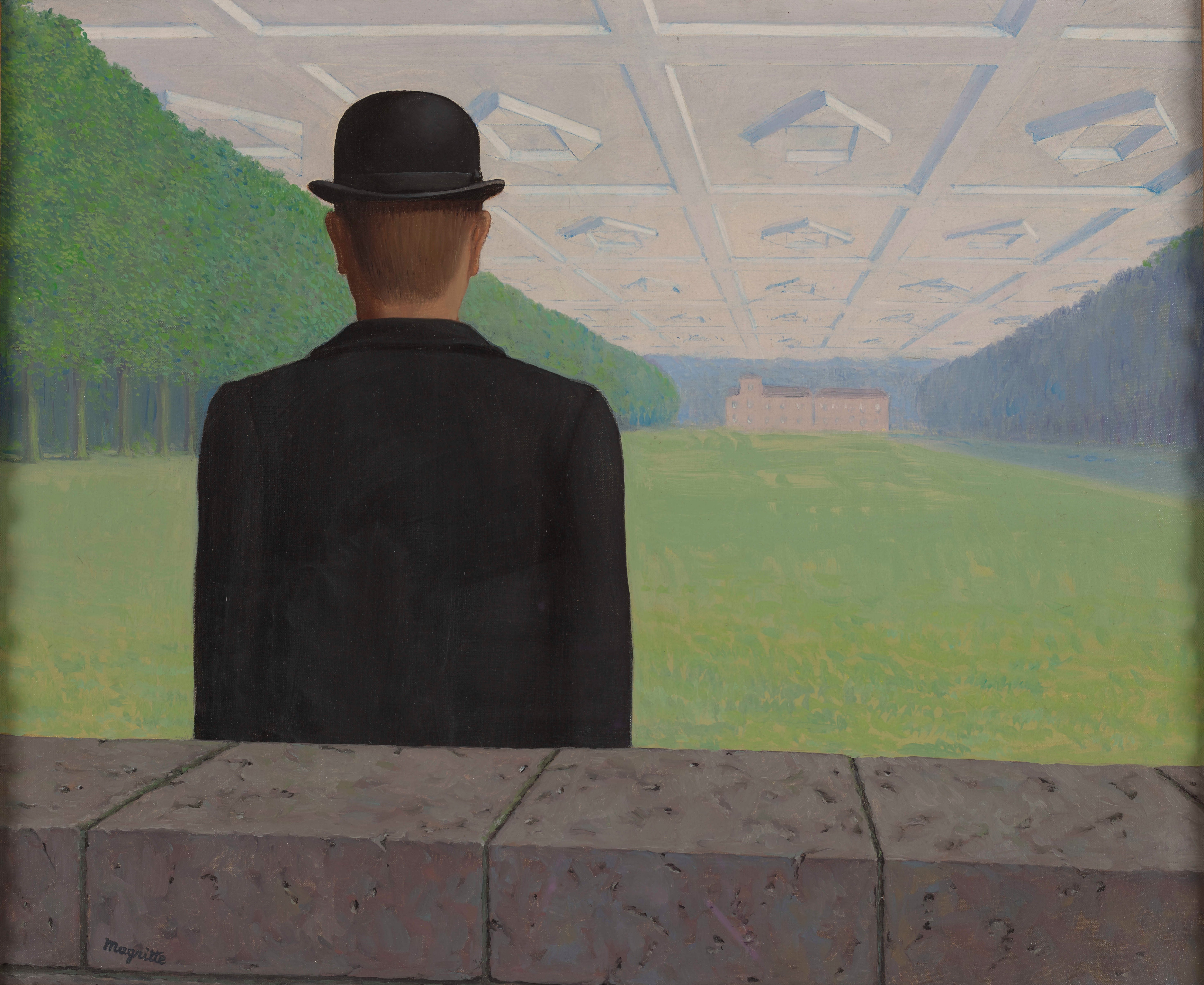 Anticipatore di questa nuova grammatica visiva il surrealista René Magritte. In Le grand siècle, forse un ammiccamento ironico alla magnificenza del Seicento, dietro un muro l’uomo magrittiano con bombetta osserva un prato delimitato da alberi con in fondo un nobile palazzo, ma si è spiazzati dal cielo costituito da un enorme soffitto a losanghe, espediente surrealista di scambio tra interno ed esterno quasi a simulare un ambiente virtuale. Richard Estes dipinge le sue scene di vita quotidiana relative alle principali città americane, come in Storefront Reflections Miami, partendo da fotografie e assemblandole in composizioni pittoriche fotorealiste o iperrealiste, che simulano cioè una realtà che non è mai esistita creando un’illusione visiva in campo pittorico. Iperrealista anche Man with Walkman di Duane Hanson che da foto Polaroid crea calchi (in resine di poliestere rinforzate con vetroresina) di persone viventi ricreando il pathos della vita quotidiana della classe operaia americana attraverso la simulazione di gesti abituali.