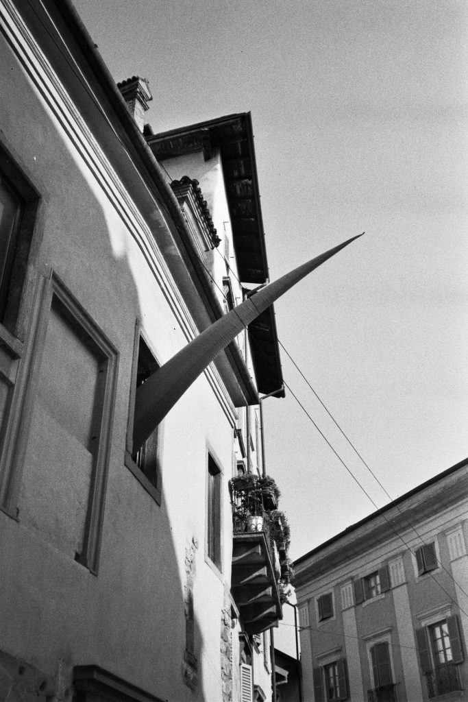Franco Mazzucchelli nasce a Milano nel 1939. Insignito del Premio Alfredo d’Andrade alla carriera nel 2022, nel corso della sua carriera ha investigato l’utilizzo di materiali industriali per dare vita a installazioni gonfiabili, spesso collocate in luoghi pubblici. Bergamo accoglie diverse opere di grandi dimensioni dell’artista meneghino, incuneate all’interno di Spazio Volta. La particolarità della mostra orobica consiste nel fatto che vi sarà l’alternanza tra una serie di opere, che cambieranno a intervalli regolari all’interno della ex fontana. Si tratta di una mostra “mutabile”, concepita per favorire l’interazione tra pubblico, passanti e luogo espositivo. Le installazioni di Mazzucchelli hanno forme e colori diversi. Un grande tentacolo rosso svetta sulla piazza bergamasca e provoca un senso di incredulità in coloro che vi si imbattono durante una passeggiata. Perché uno spuntone gonfiabile fuoriesce vistosamente da quella che dovrebbe essere la finestra di un edificio antico? L’intervento all’esterno fa riferimento alla serie A. TO A. (Art to Abandon), che Mazzucchelli realizza negli anni ’70 per opporsi al canone estetico dell’epoca. L’arte contemporanea può anche essere giocosa, la si può esporre ovunque, anche nei posti più impensabili. È uno strumento che rende possibile una nuova “dimensione abitativa”, un mezzo per cambiare la nozione di “qui e ora” e dare modo all’osservatore – anche per pochi istanti – di ricondurre quella visione a una dimensione familiare, amicale, quotidiana.