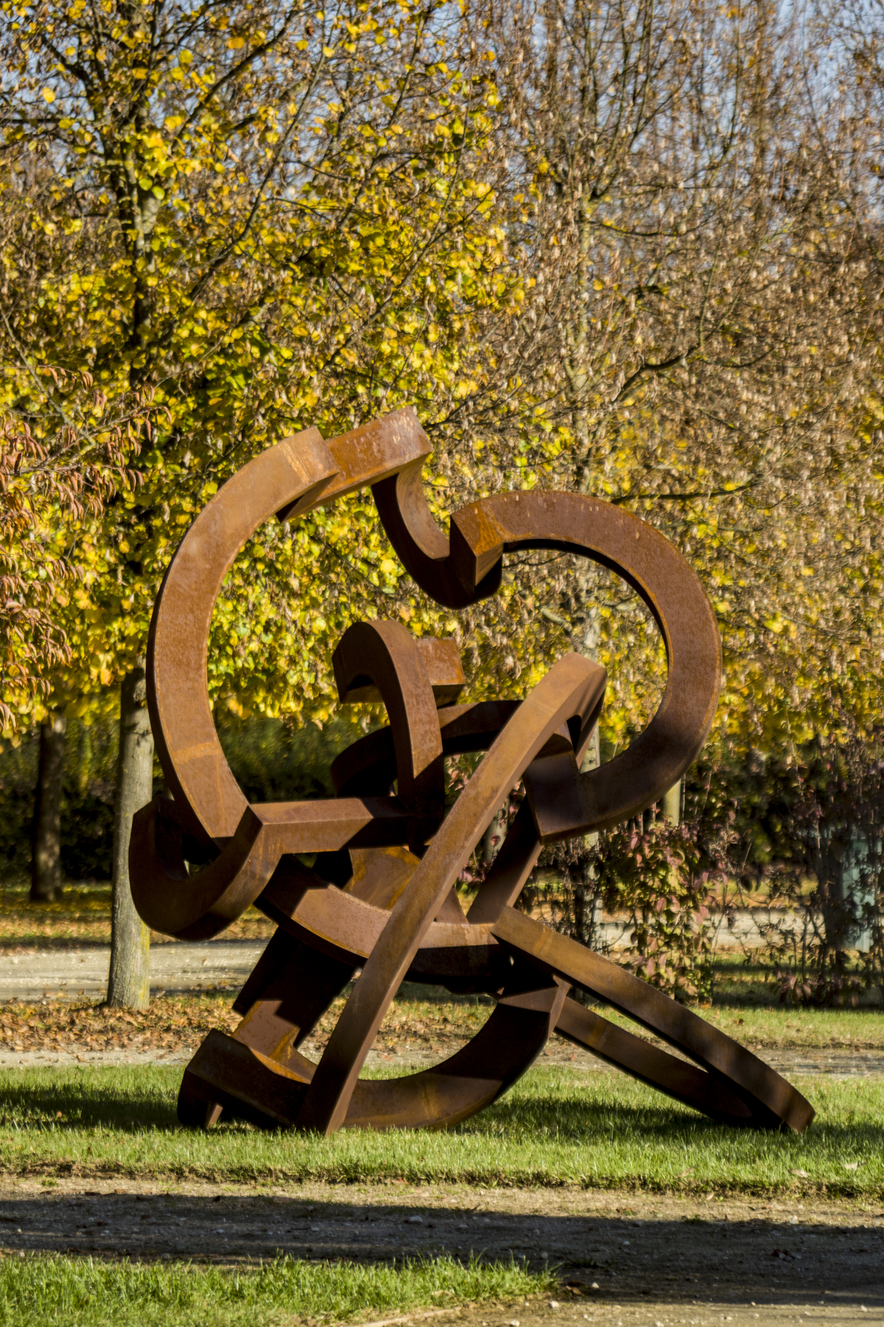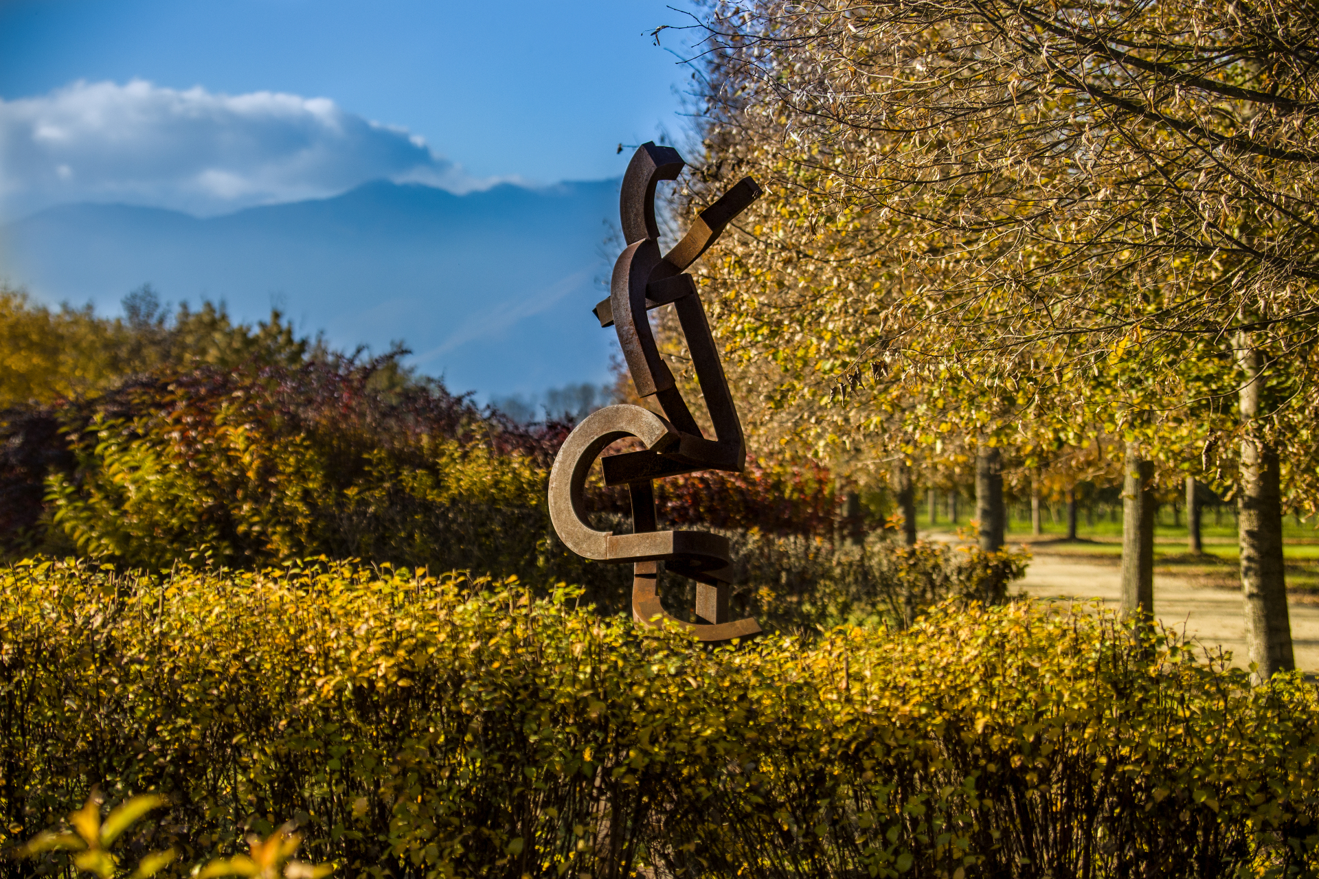 Questa volta lo scultore, meritevole profeta in patria, regala al pubblico la visione di nove sculture monumentali realizzate in acciaio e bronzo tra il 2002 ed il 2020, particolarmente esemplificative del suo percorso artistico posizionate nel Parco basso, lungo il viale tra l’Allea Centrale e il Potager Royal, e nel Parco alto, lungo l’Allea di terrazza.