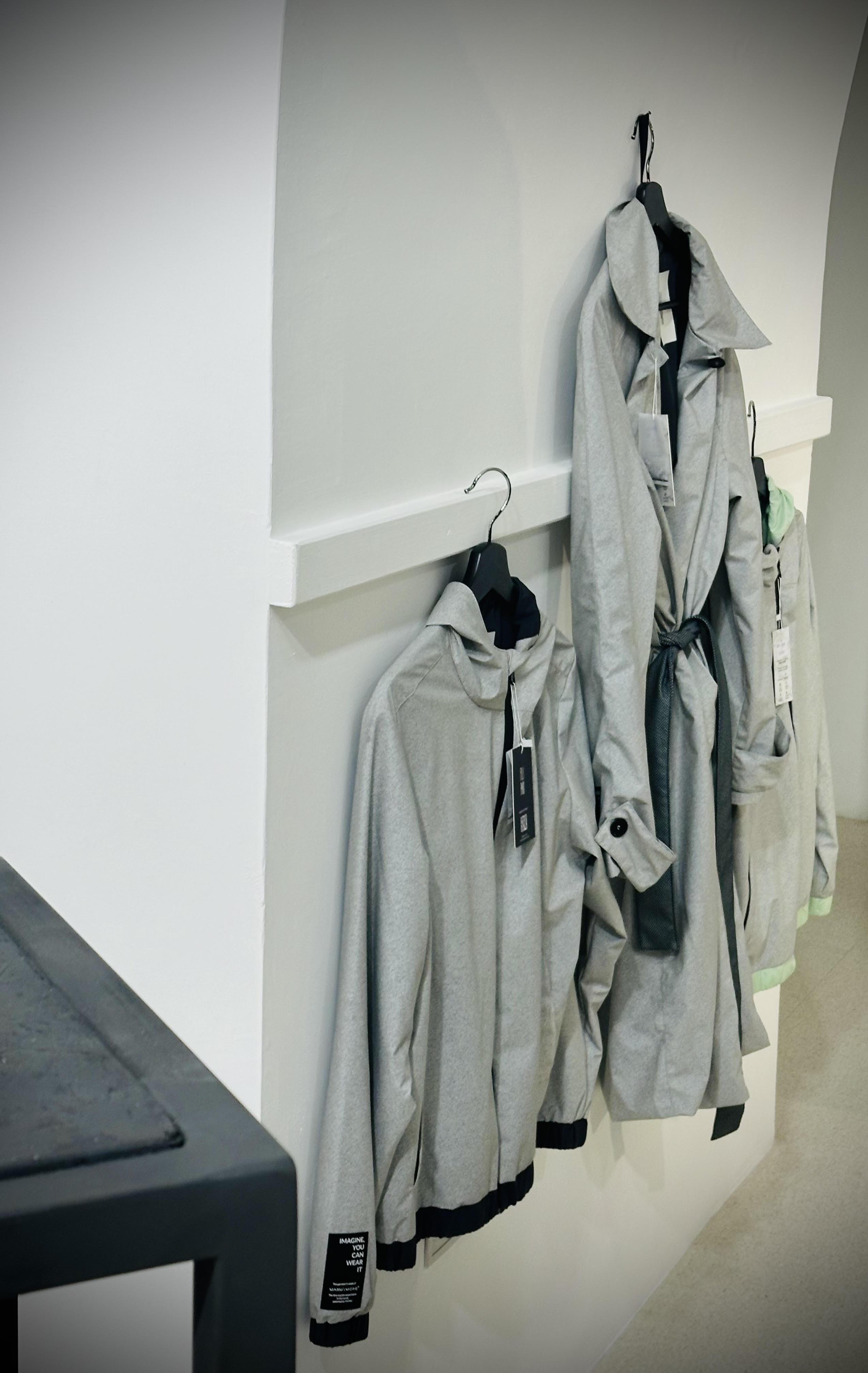 Le cromie naturali utilizzate da Pfingst solo le stesse dei capi d’abbigliamento cui le sue sculture si accompagnano, per un’esperienza inter-artistica sempre più in voga. Oltre alla collaborazione con lo studio M’Arte Scultura, la mostra infatti si impreziosisce della partecipazione di un mirabolante brand italiano: Fili Pari. Una startup dal taglio fashion-tech, ideata tra i banchi del Politecnico di Milano, a partire dalle menti di due giovani creative e lanciata ufficialmente quattro anni fa. Fripi e Ali sviluppano prodotti made in Italy innovativi, a partire da un mix esclusivo di materie prime, generando sinergie inaspettate per soluzioni tessili sostenibili.