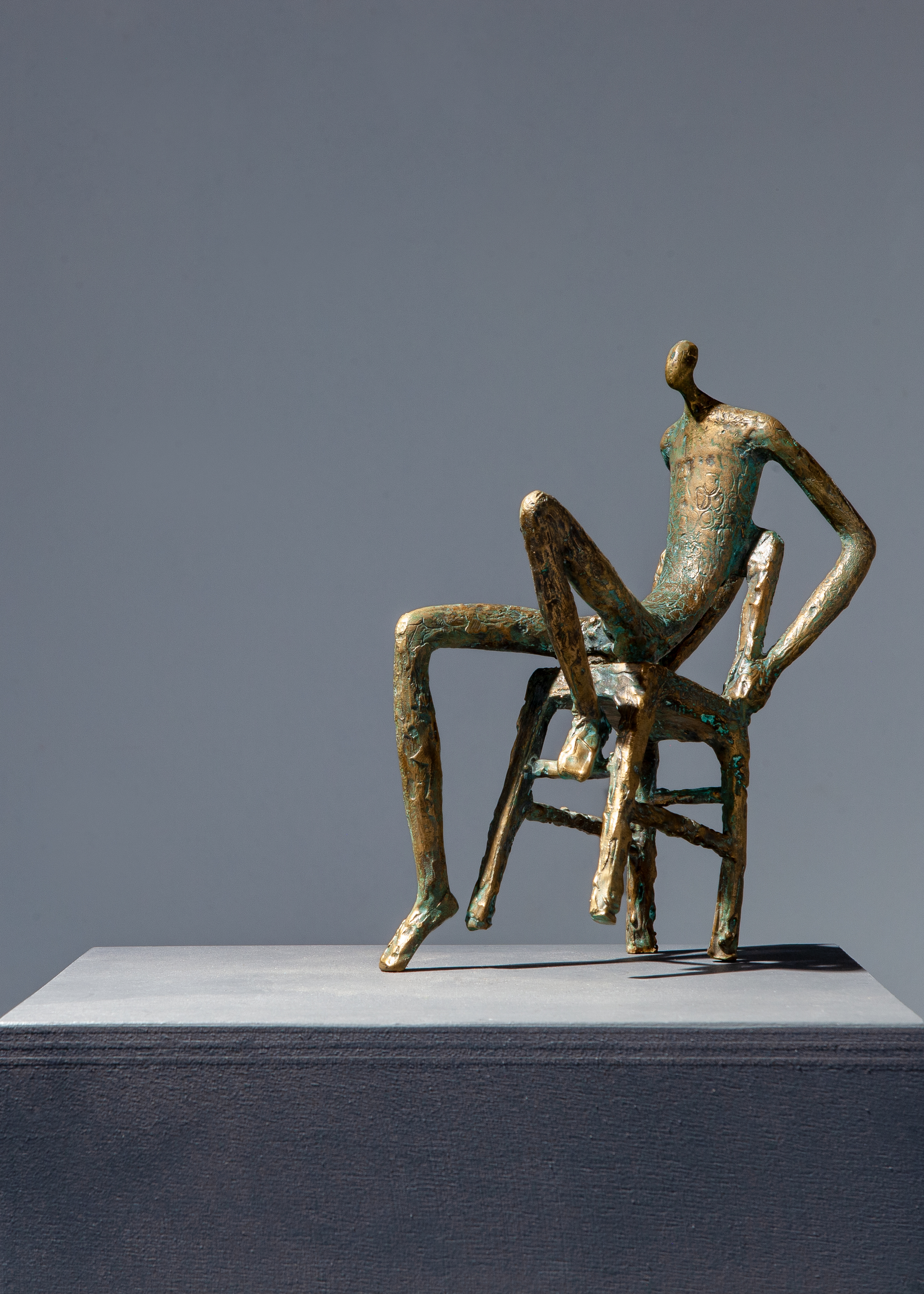 Il percorso espositivo prevede 11 sculture in bronzo, delle piccole figure umane filiformi, persone indefinite nel genere, nell’etnia, nell’età, che sembrano divertirsi negli spazi della galleria, saltellando al centro della stanza. Queste persone sembrano essere sospese, alla ricerca di equilibri anche banali, come quello di una seduta, così come gli azzardi acrobatici di un esercizio a metà dell’aria in aria, alla ricerca di una stabilità che si sposa in modo efficace con il sentimento comune che contraddistingue l’umanità negli ultimi anni. Il percorso è completato da una selezione di opere realizzate con la tecnica della tempera su carta, in cui il soggetto principale è quello femminile, degli studi leggeri e delicati di donne colte in alcuni movimenti, mai statuarie, mai fisse.
