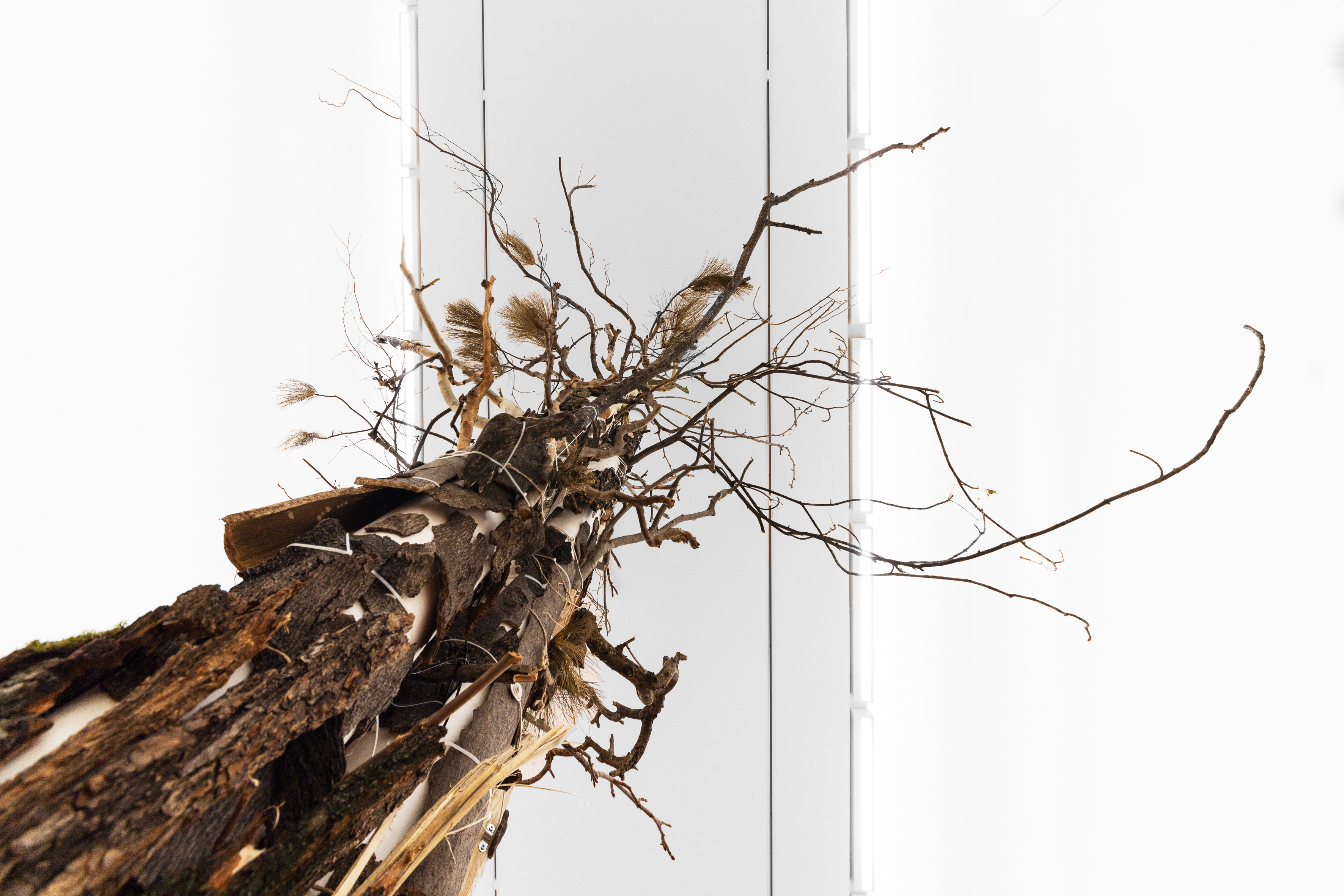 L’opera d’arte collettiva è collocata al centro dello spazio espositivo, a ricoprire una delle colonne che sorreggono la struttura. L’idea nasce dalla tempesta che ha tragicamente colpito Milano il 25 luglio 2023, provocando danni gravi alla città. Gli artisti scelgono di recuperare le cortecce e gli elementi naturali andati distrutti e di raccoglierne i frammenti in un’opera in grado di trasformare la catastrofe in un’occasione di confronto e apertura all’altro.