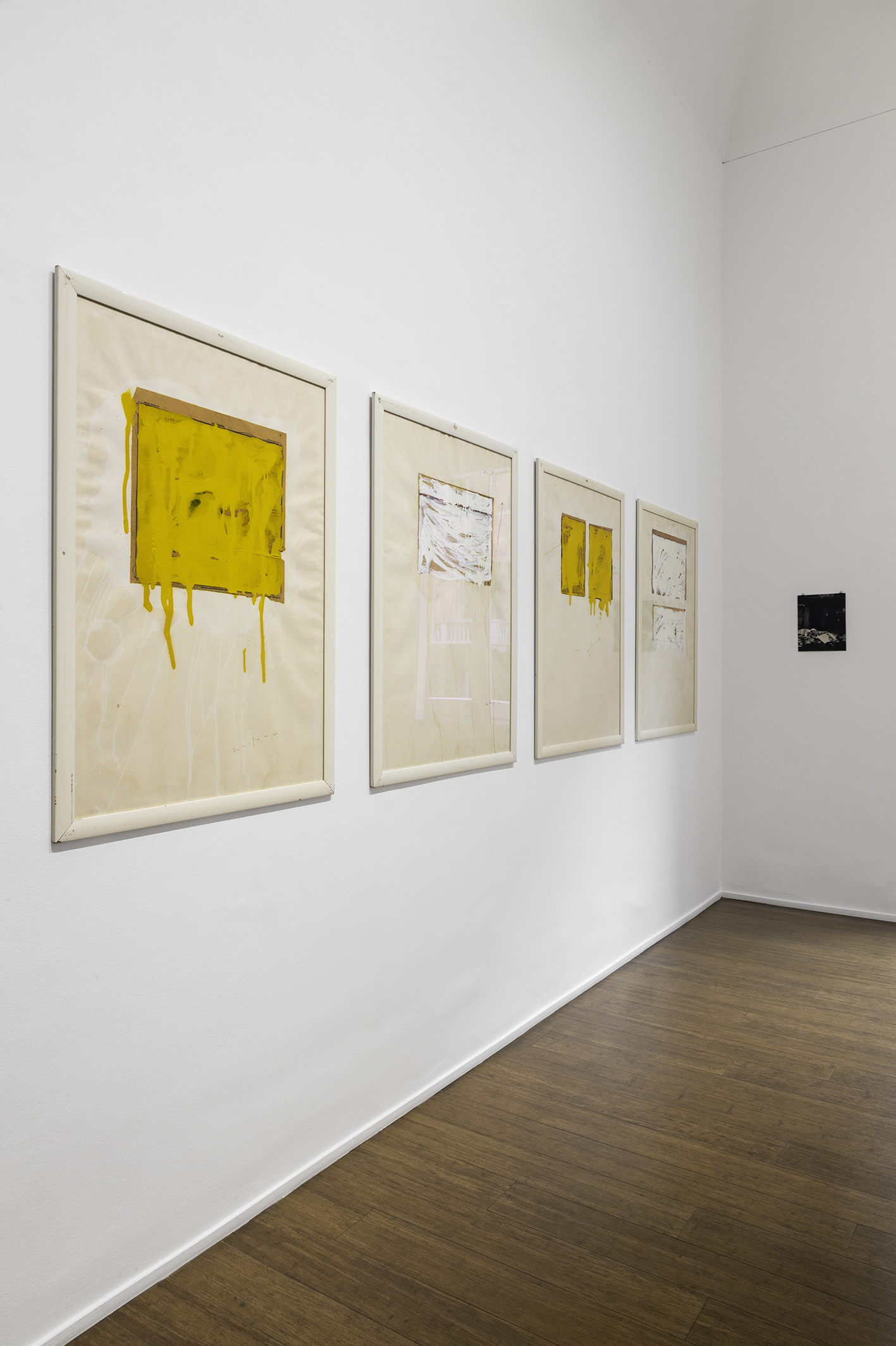 Quel Correre rapinoso attraverso le cose del mondo, sentendosene parte, è stata una delle qualità di Schifano. E dovremmo ringraziare la sua scaltrezza intellettuale per questa mostra qualitativamente simile a una “capsula del tempo”, in cui la carta dei Senza titolo presenti è ingiallita assieme alle parole, marcando una linea tra il nostro “essere noi” di oggi e il suo “essere Schifano” di ieri. In cui anche le cornici, avendo perso l’originale bianco vivido e con qualche segno in più, citano tutto un proprio peregrinare spazio-temporale. Così come le immagini di viaggio dei Paesaggi urbani, scampoli di una vita trasversale all’ufficialità, scorciata e impressa tra contrasti cromatici sbiaditi. Formati differenti, percorsi differenti, per concentrazioni narrative perfettamente combacianti.