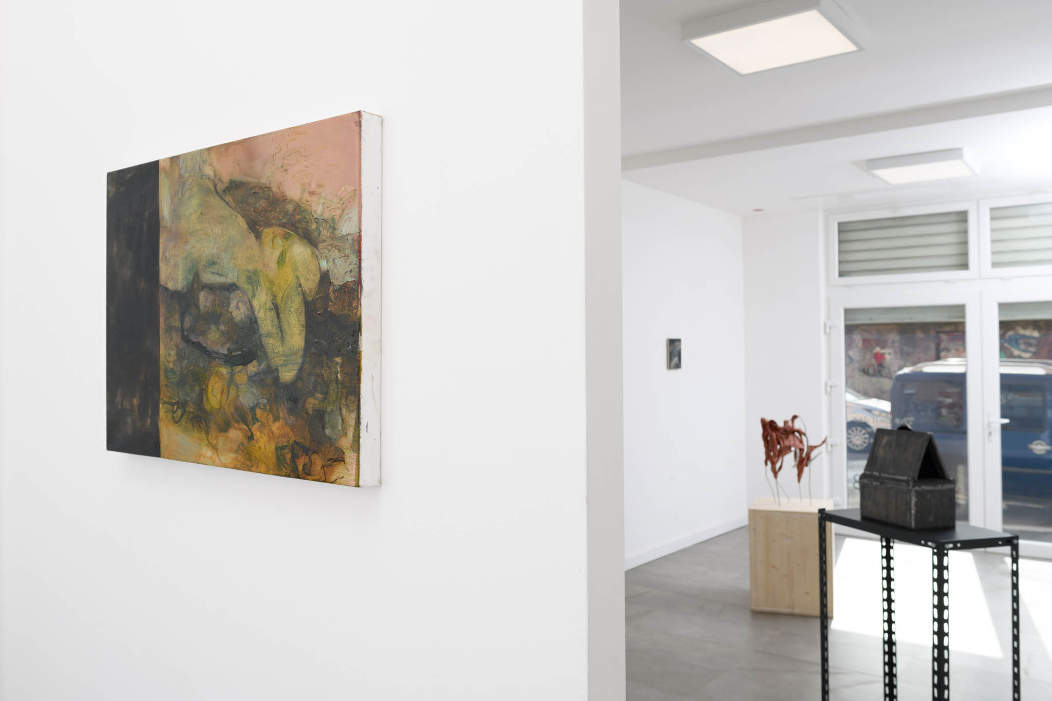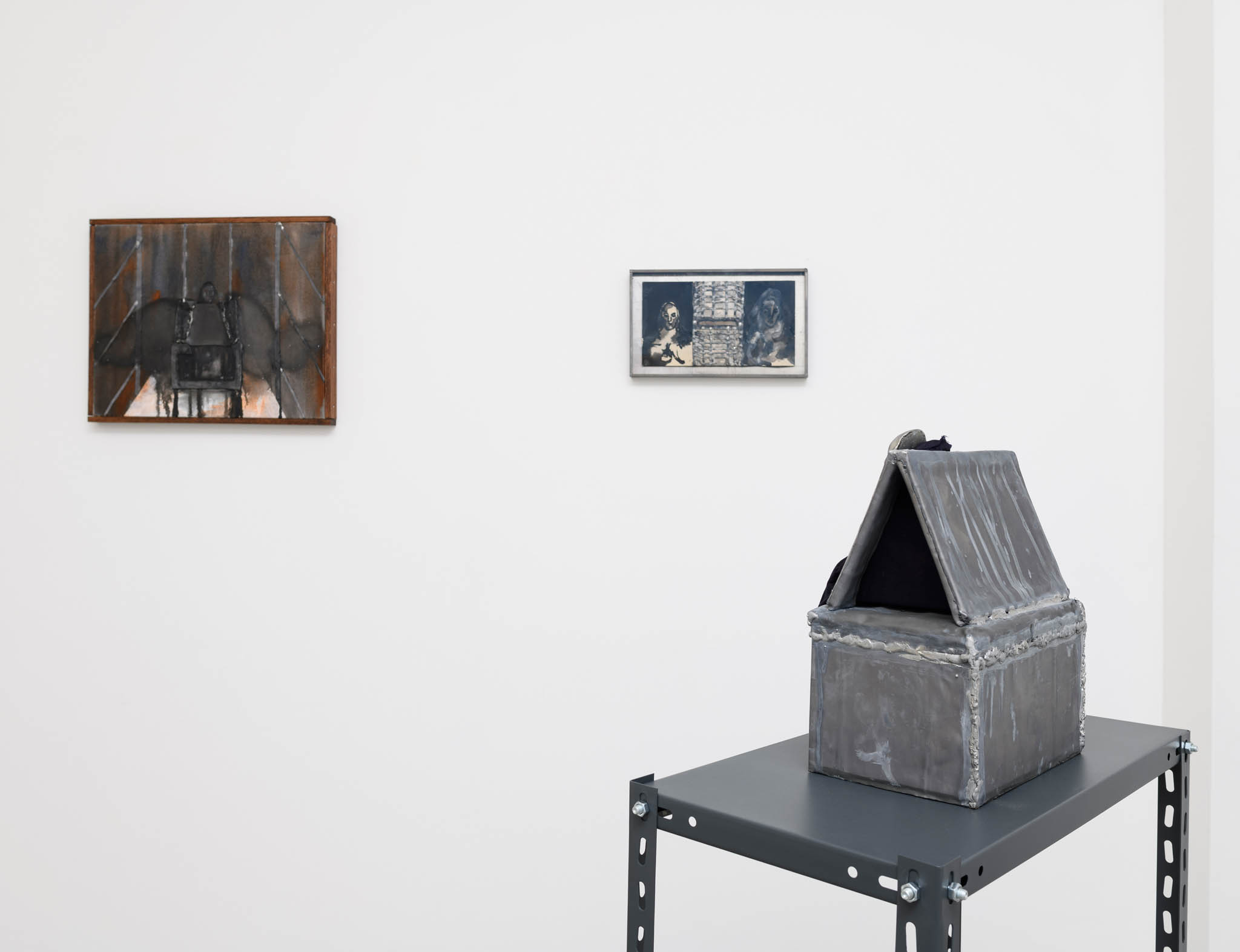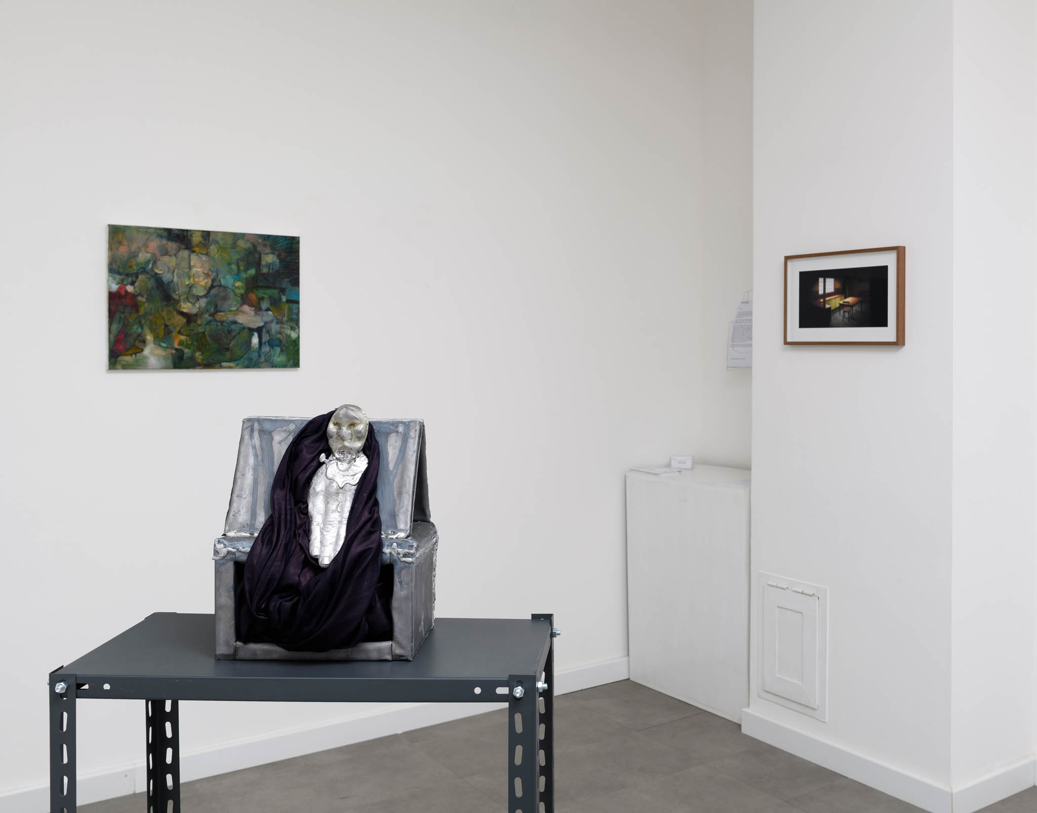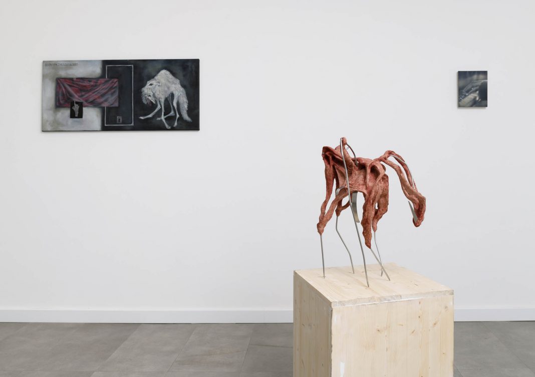 Tuttavia, la figura è ancora abbastanza nitida e riconoscibile, al contrario di quella tratteggiata da Mounir Eddib (Belgio, 1995) nel dipinto The Pit (2026) in cui a fare da padrone è un senso generale di fortissima inquietudine e isolamento. L’artista belga ci fa compiere un salto in avanti nell’abisso umano, mostrando in pieno il dramma che, d’altro canto, Naomi Hawksley delinea con delicatezza, come uno schizzo, nella fase immediatamente precedente, quella del disconoscimento, della frattura. E ancora, con il dipinto Unshaken (2006) e con l’installazione Insider-Outsider (2026), Mounir Eddib distrugge anche l’ultima sensazione di confort restante nel visitatore. Il confronto tra noi e i nostri demoni interiori – parrebbe voler dimostrare – non può avvenire attraverso mezze misure, come emerge anche dall’opera disturbante di Ruby Chen (Cina, 2001) In a Building That Is Falling Apart (2025) e dall’installazione Saltational Monsters (2024) di Camilla Alberti (Italia, 1994). Da questa visione nasce il dolore che trascina in una dimensione oscura, unidimensionale, da cui è difficile trovare riscatto. La solitudine che ne deriva sembra poco decifrabile e comprensibile agli occhi esterni.