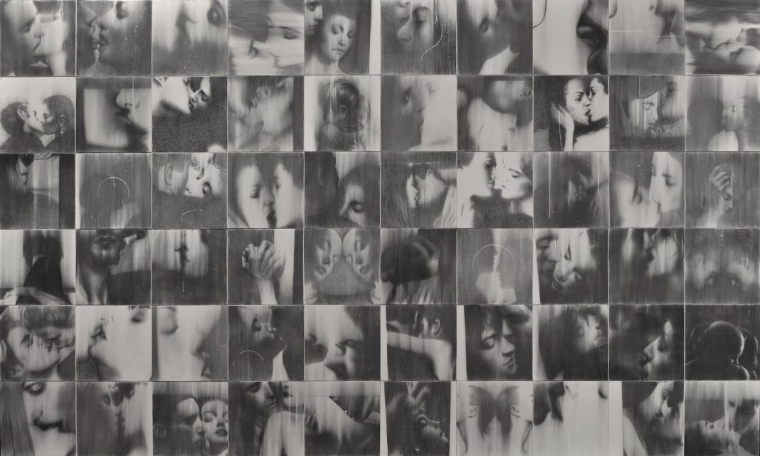 Da sempre considerato da molti come lo strumento per raggiungere un fine pittorico, il disegno vive di luce propria nelle opere di Galliani, che lo rende mezzo prediletto e gli dona una propria indipendenza. Prendendo ispirazione dai grandi maestri, come Leonardo da Vinci, Raffaello e Albrecht Dürer, l’artista sperimenta dagli anni Settanta affidandosi alla grafite, il quale nero brillante e misterioso spicca sulle tavole di pioppo e sulla carta. Nella prima sala, la serie delle Nuove anatomie è messa in relazione con l’installazione Baci rubati. Covid-19 (2020), sessanta disegni in cui bocche, mani e volti, presi da fotografie del web, si intrecciano e si accarezzano dolcemente, contrastando con il periodo di distanziamento sociale legato al lockdown.