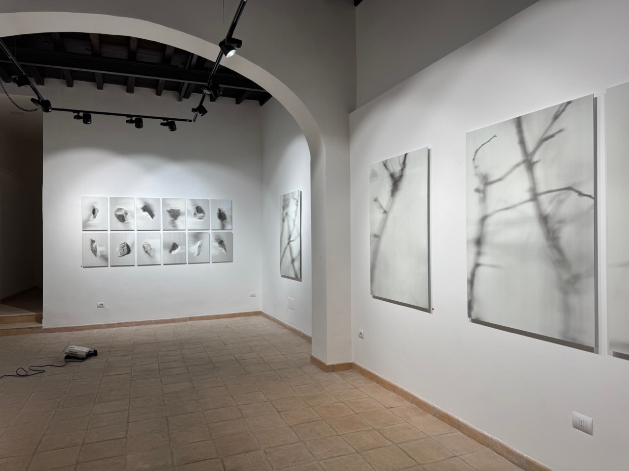 Si penserà che tutto questo non è pertinente a una mostra come Brevemente risplendiamo sulla terra, ma non è così. La mostra è un’affascinante Camera a nebbia dove, in virtù del lavoro attentissimo di Parisse, bisogna immaginare degli irraggiamenti di materiale che è precipitato sul finire di una notte terribile. Quel materiale è vegetale, minerale, frammento di oggetti d’uso e d’improvviso ci appare luminoso e visibile nel suo senso, anzi nei suoi molti sensi che si sono condensati in quelle immagini che l’artista ha spinto sotto il nostro sguardo creando una scia, una traiettoria di spazio e di tempo, appunto, caldamente significante.