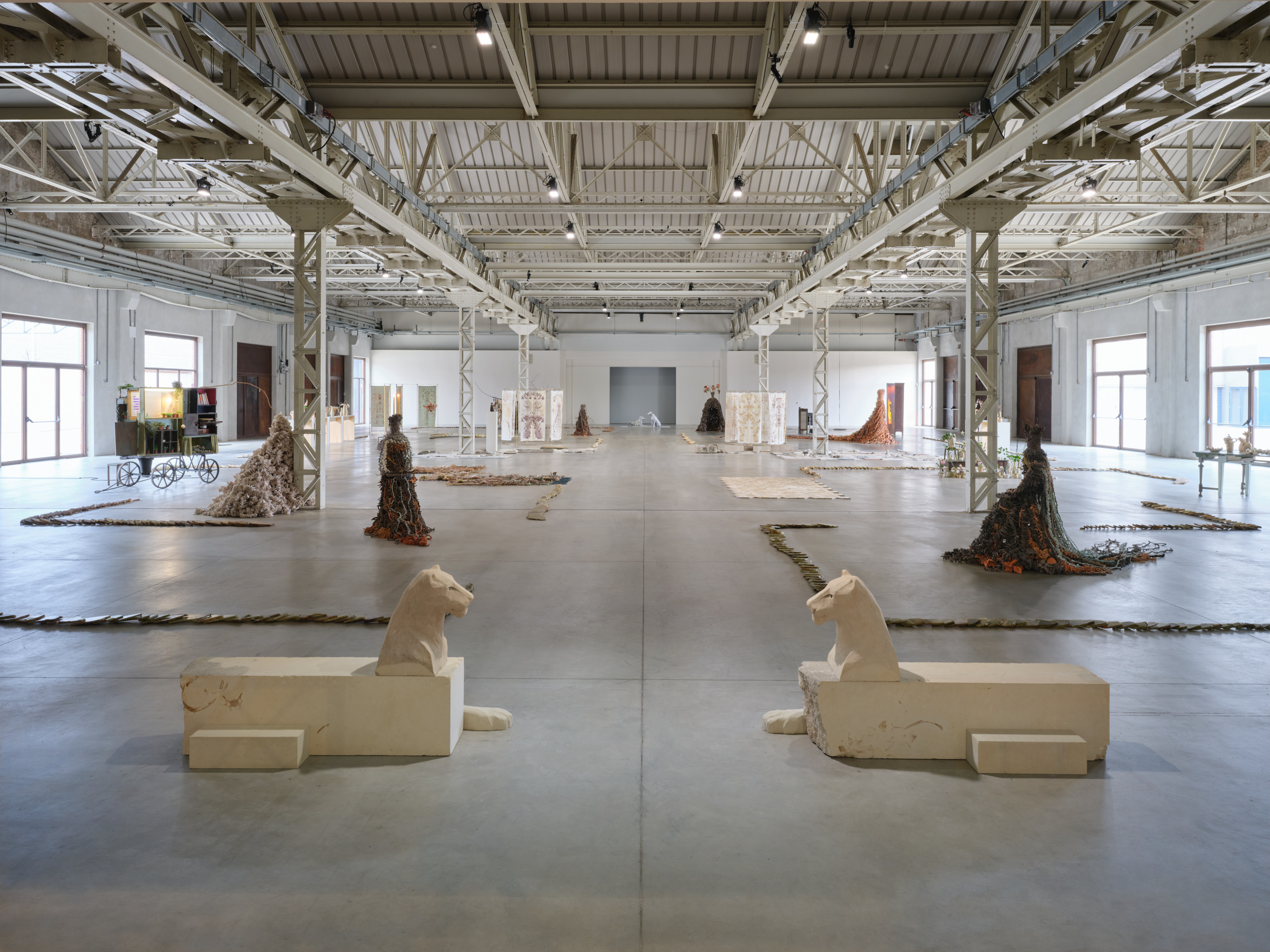Lo spazio dello Shed del Pirelli HangarBicocca muta ancora una volta il suo aspetto, ospitando la più completa e grande personale in Italia di Chiara Camoni. Chiamare a raduno. Sorelle. Falene e fiammelle. Ossa di leonesse, pietre e serpentesse è il titolo dal ritmo poetico che come una formula magica, dona un’atmosfera incantata al luogo che si sviluppa secondo un’architettura radiale, improntato sui giardini italiani tardorinascimentali. L’esposizione curata da Lucia Aspesi e Fiammetta Griccioli inquadra uno spazio perimetrale ben preciso, scandito a tratti da una pavimentazione appositamente realizzata che sembra rivelare le fondamenta di una civiltà scomparsa, una Pompei che riemerge dalle ceneri.