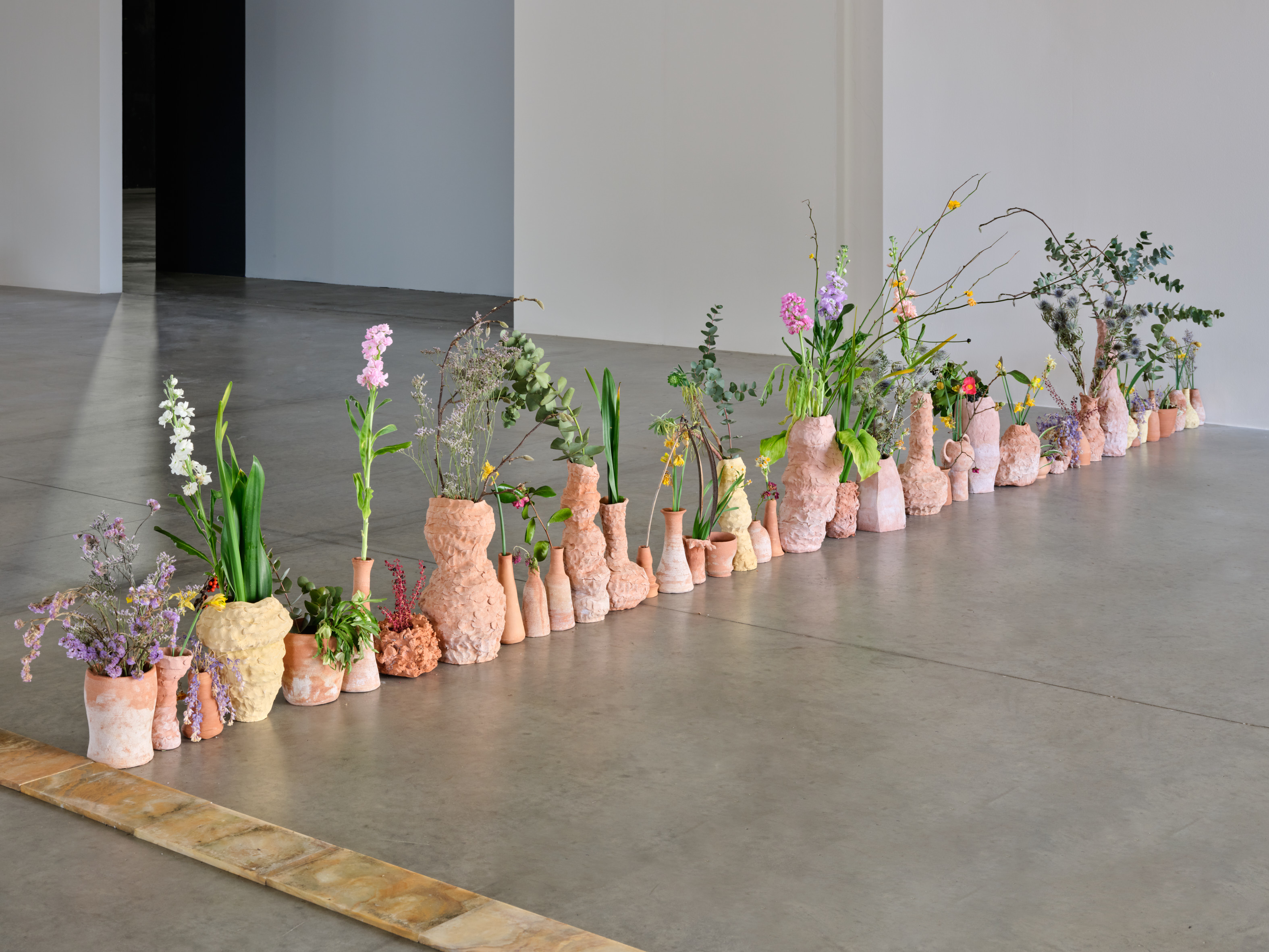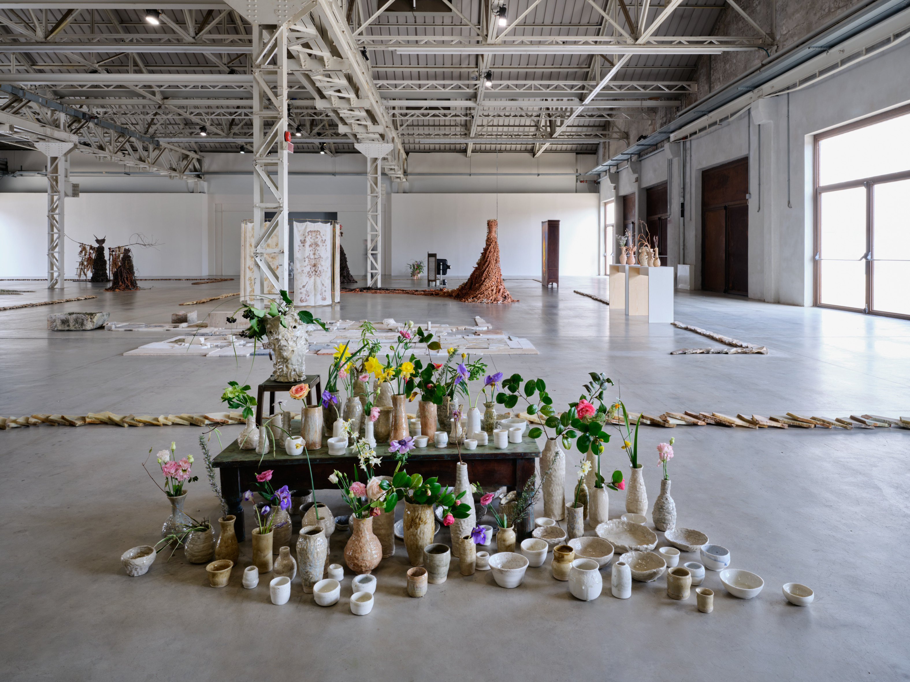 A guardia di questa acropoli sono poste le due Leonesse del titolo, che segnano la soglia di ingresso oltre la quale ha inizio la rappresentazione artistica. La linea tra oggetto di uso domestico e opera d’arte è infatti qui sottile, tavoli e tavolini, come Tavolo Insetto, vengono trasportati direttamente dalla cucina e dal giardino dell’artista in mostra, acquisendo sembianze zoomorfe e portando l’attenzione sui momenti conviviali e creativi che ruotano intorno al concetto di tavola. Su di essa vengono accomodati vasi e vasetti di varie dimensioni, Piatti e Brocche che ancora portano i segni delle dita che le hanno modellate, alcuni provenienti da workshop organizzati dall’artista stessa.