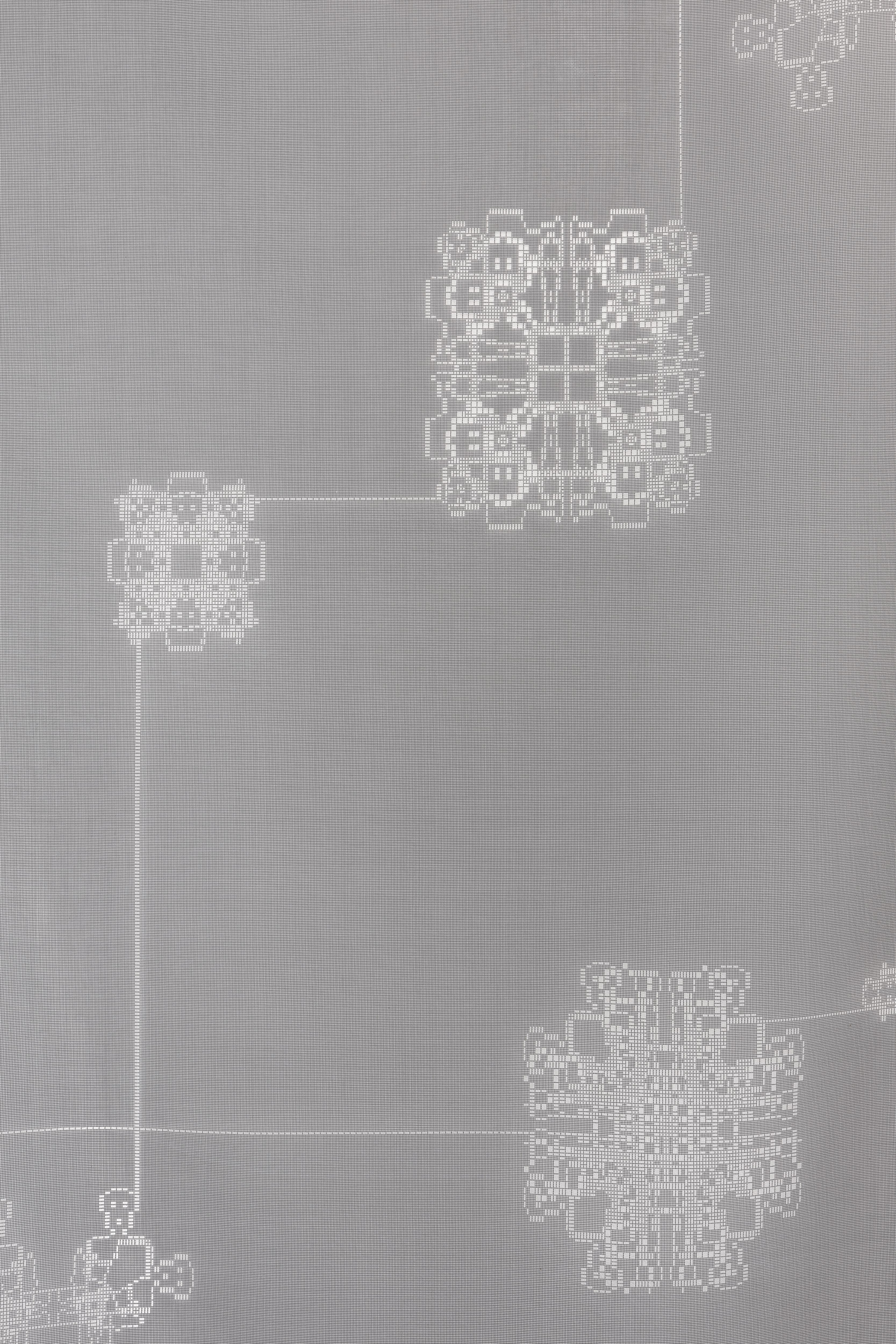 Evanescenze accoglie le serie dei lavori che l’artista ha realizzato tra il 1994 e il 2006 utilizzando reti in fibra come supporto sul quale disegnare con le forbici figure e geometrie impalpabili e visionarie. «Evanescente è qualcosa che è in leggero movimento: le reti che sono colpite da una luce appaiono in un modo, colpite in un altro modo appaiono diversamente. Quest’idea di evanescenza è insita nelle reti stesse». Le opere hanno un elemento comune, una concezione di gesto artistico reiterato che, come un mantra, indaga ed esprime visivamente una meditazione sulla dimensione mistica e spirituale dell’esperienza umana.