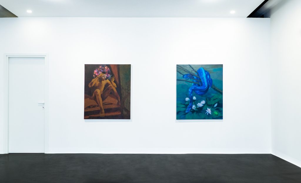 Come tutti i migliori inizi, Edge Art Space inaugura poeticamente con la mostra personale Spumes of Flowers di Eleonora Rinaldi (Udine, 1994). La pittrice friulana costruisce un immaginario onirico ispirato alla poesia Le Bateau Ivre (Il battello ebbro, 1871) di Arthur Rimbaud (1854-1891). Sei grandi quadri ad olio si distinguono per l’attenta ricerca cromatica in cui tonalità molto accese sono sapientemente armonizzate in un gioco di chiaro scuro. I soggetti dei quadri riguardano l’universo naturale, umano e animale in una visione in cui la percezione sembra alterata. Le immagini delle tele si svincolano dalla traccia letteraria e sembra che Eleonora Rinaldi si sia servita della poesia come mezzo di evasione dalla realtà per creare un personale e libero universo raffinato come l’estetica di Rimbaud. Ogni quadro eseguito dalla pittrice nasce da un disegno preparatorio accuratamente studiato che racchiude la potenza dell’idea, esaltata poi dalla composizione pittorica finale.